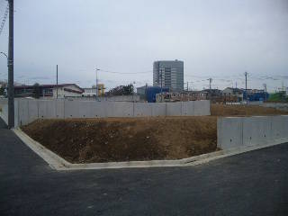 道路面より一段高くなった角地に建つ木造の2世帯住宅です。