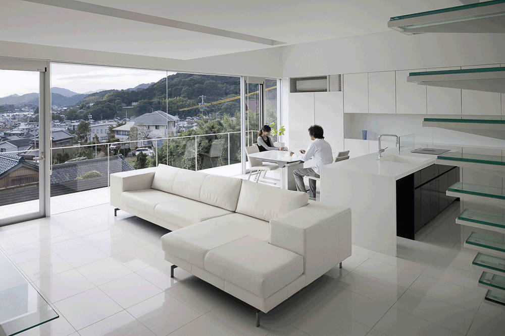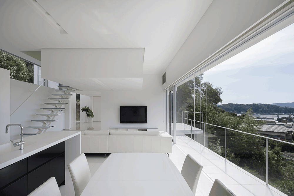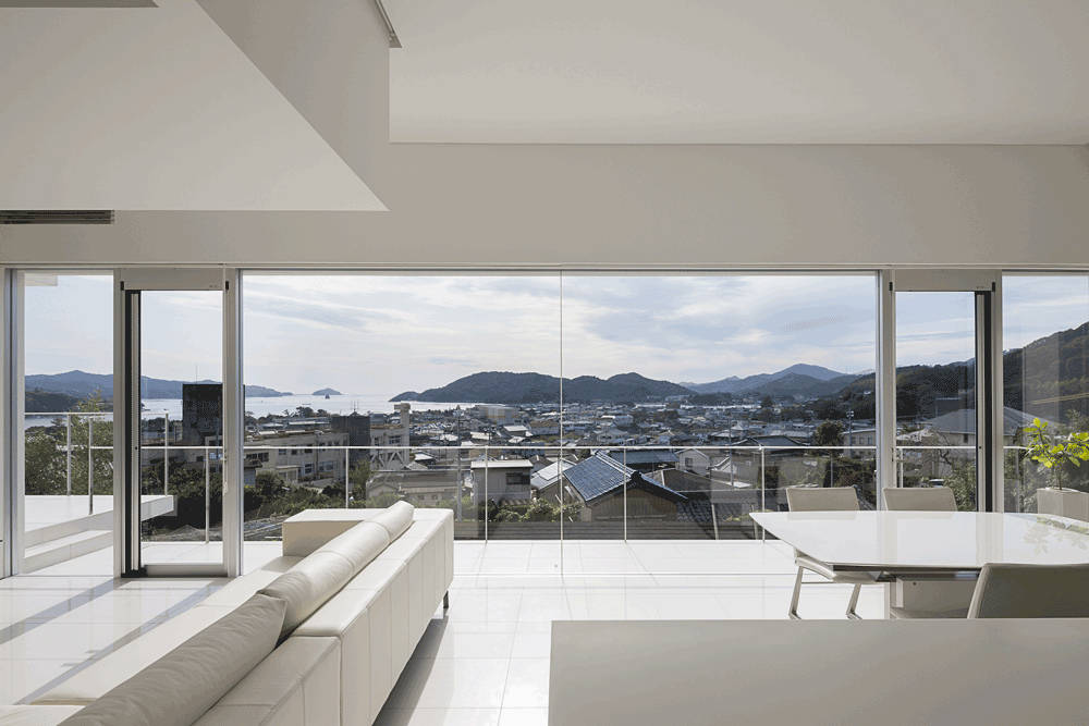 インテリアは白で統一し、室内からながめる山の緑、空の青、海のきらめきをひきたて、ここで生活することの幸せを、浮かびあがらせるようにしました。