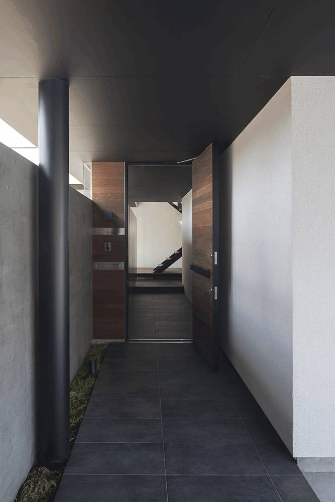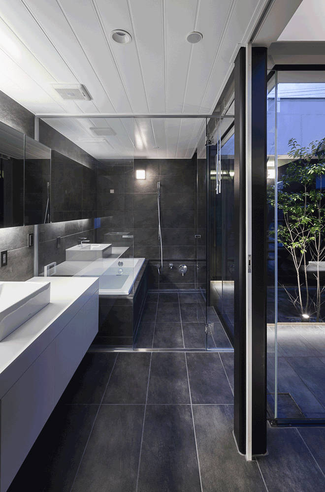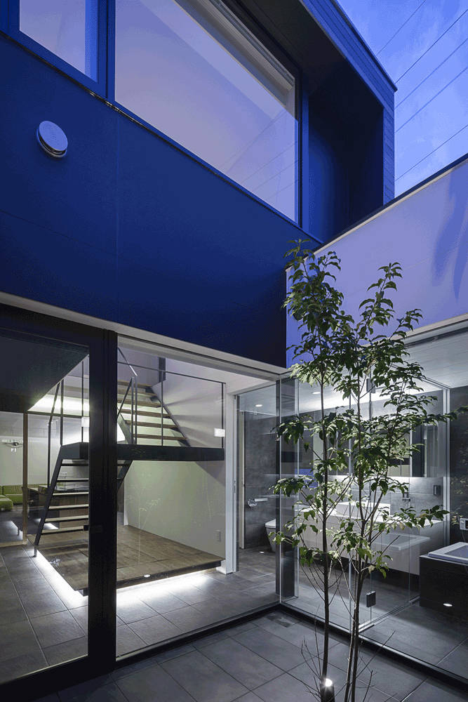 混みあった住宅地の中にあって、プライバシーを確保しながらも、できる限り開放的に自然の要素がとりいれられるように、配置と空間の方向性をコントロールした家です。
