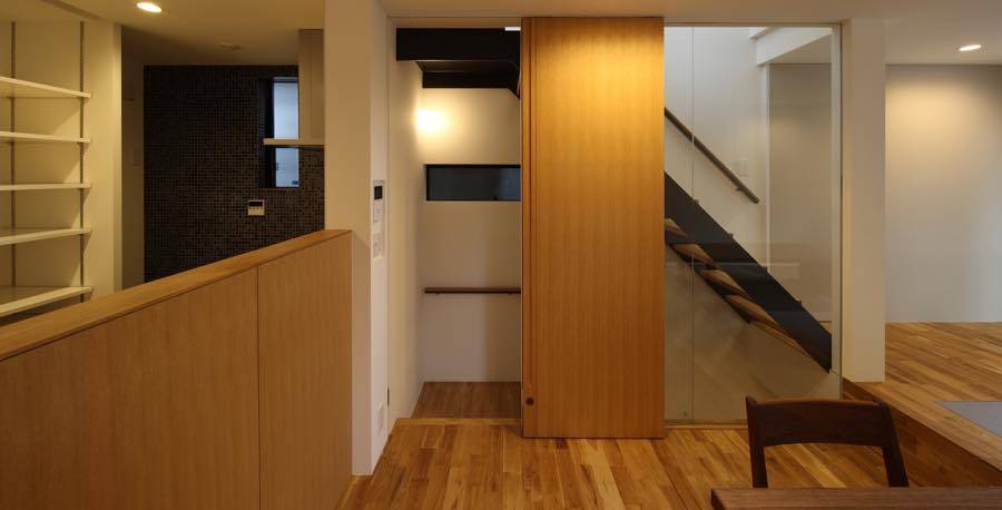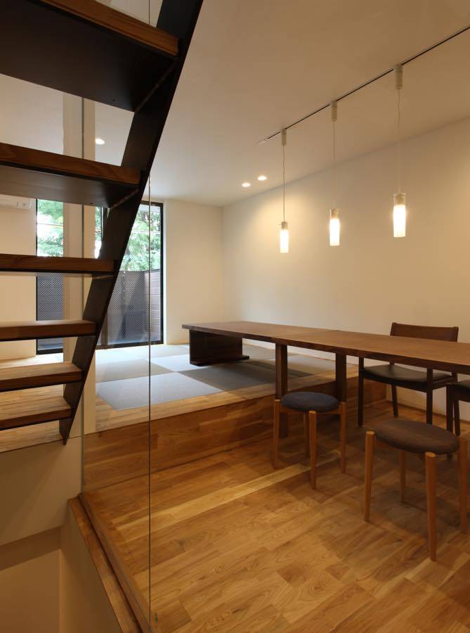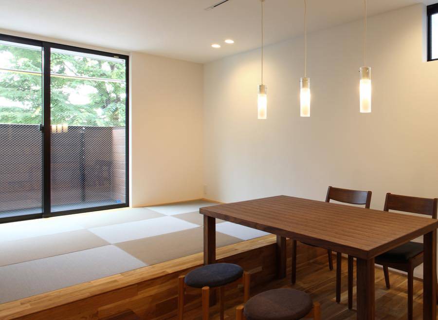 2階のタタミ居間とダイニングの空間は、独立されたご家族が集る時に大きな一つのテーブルで食卓を囲めるよう計画しています。