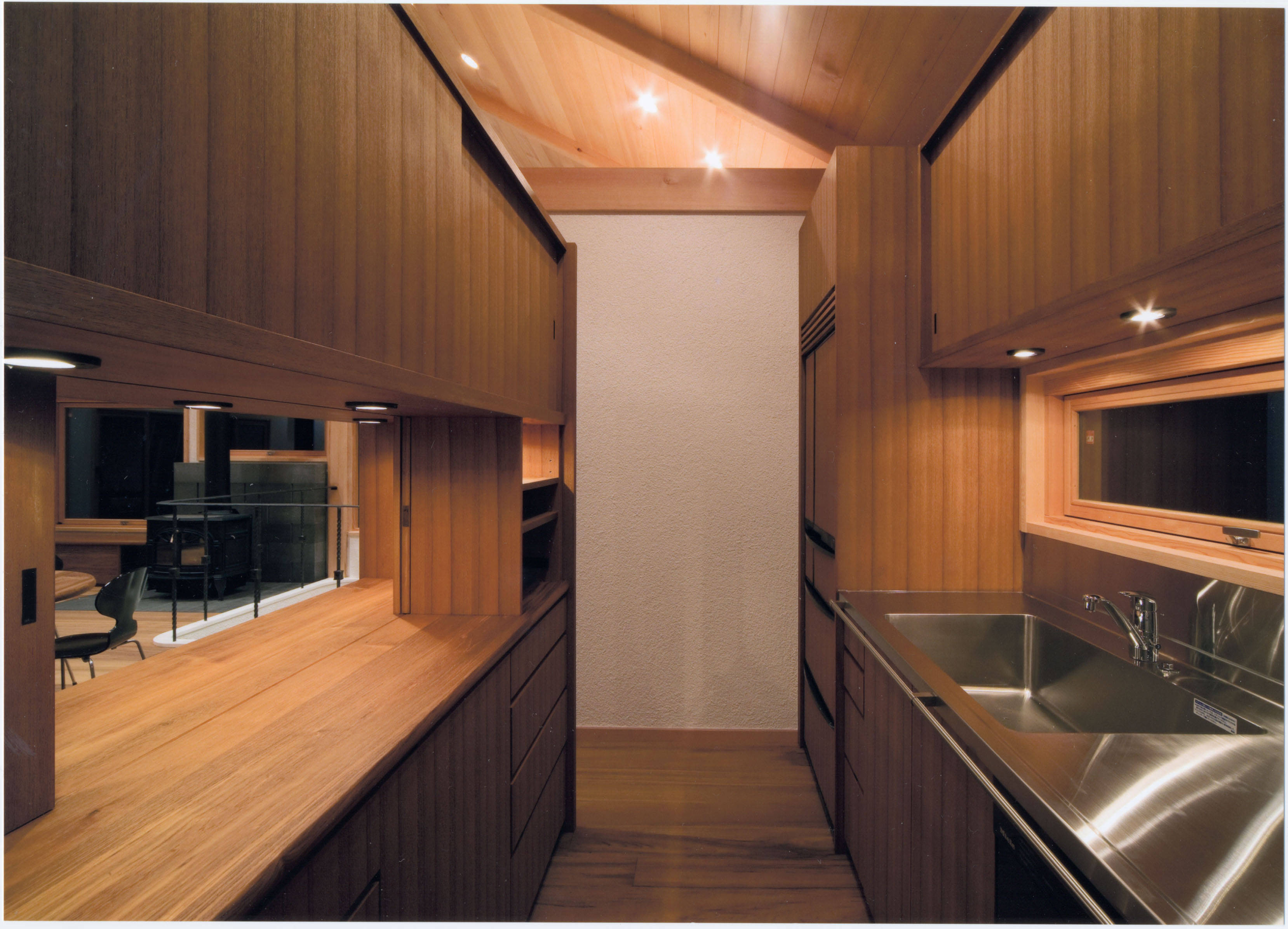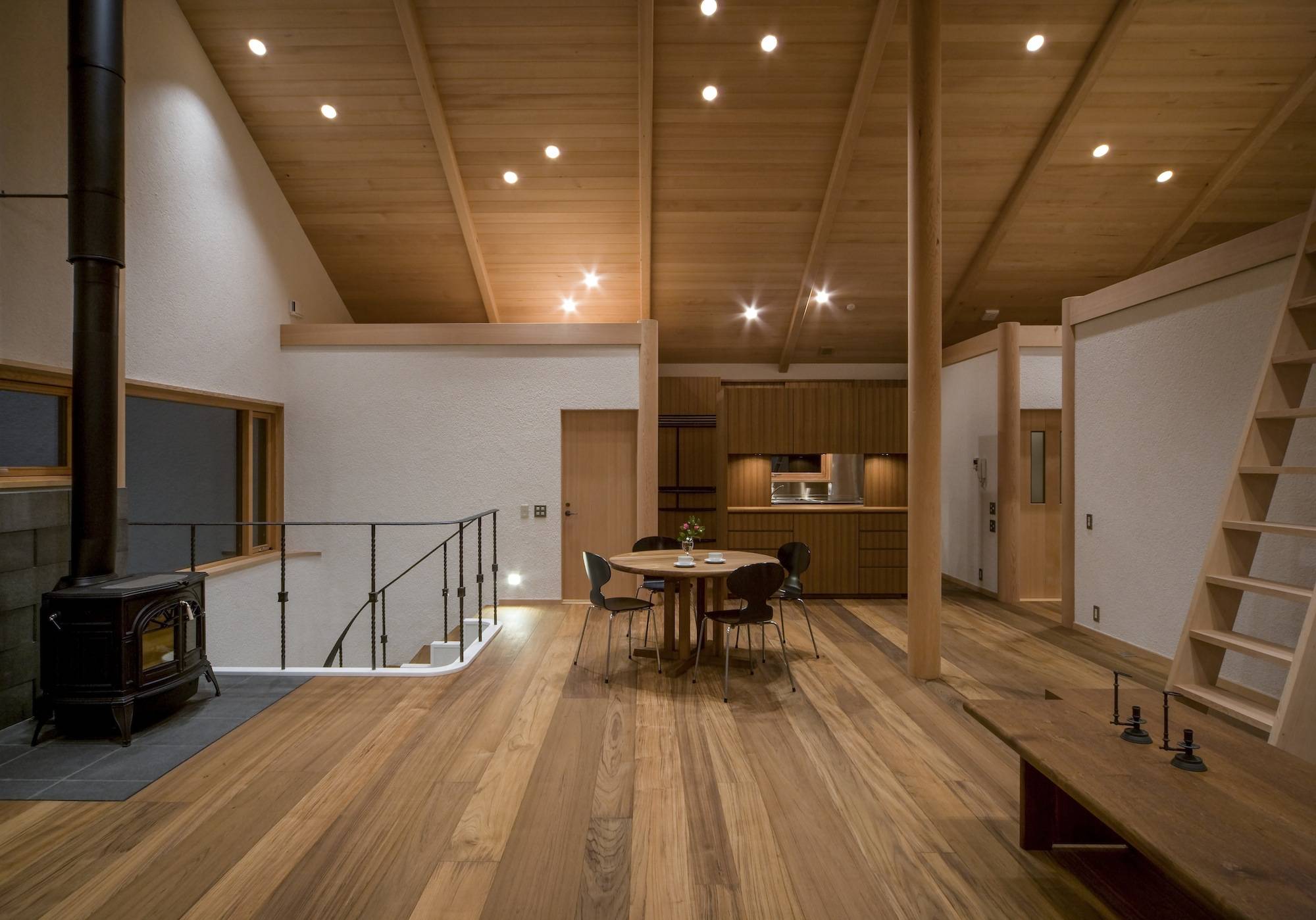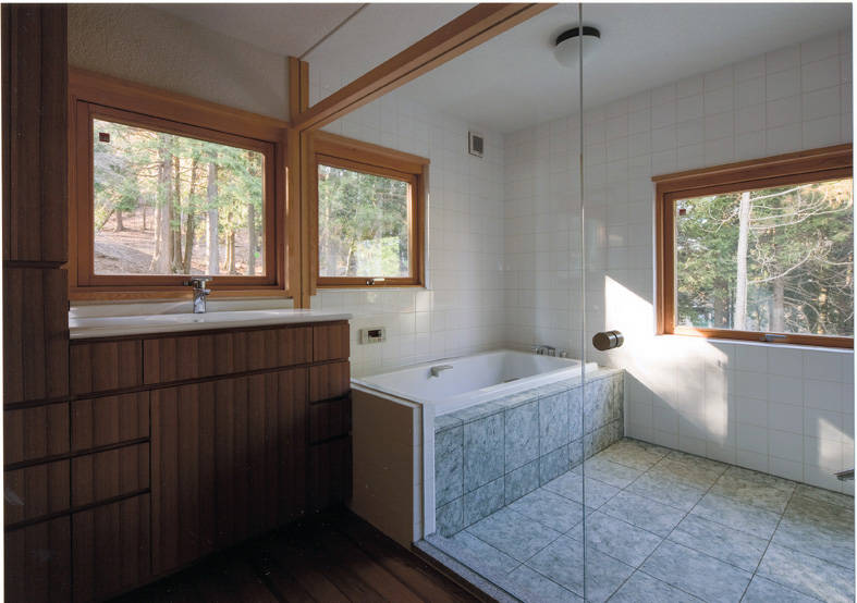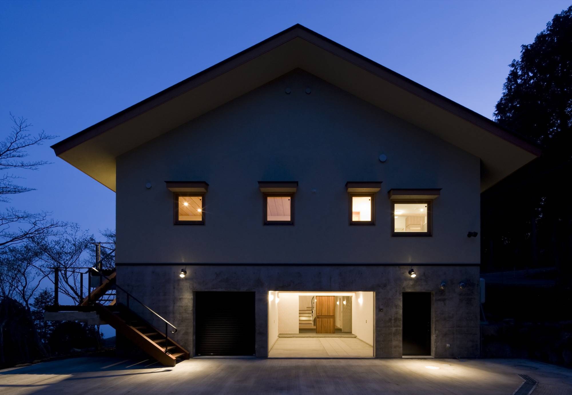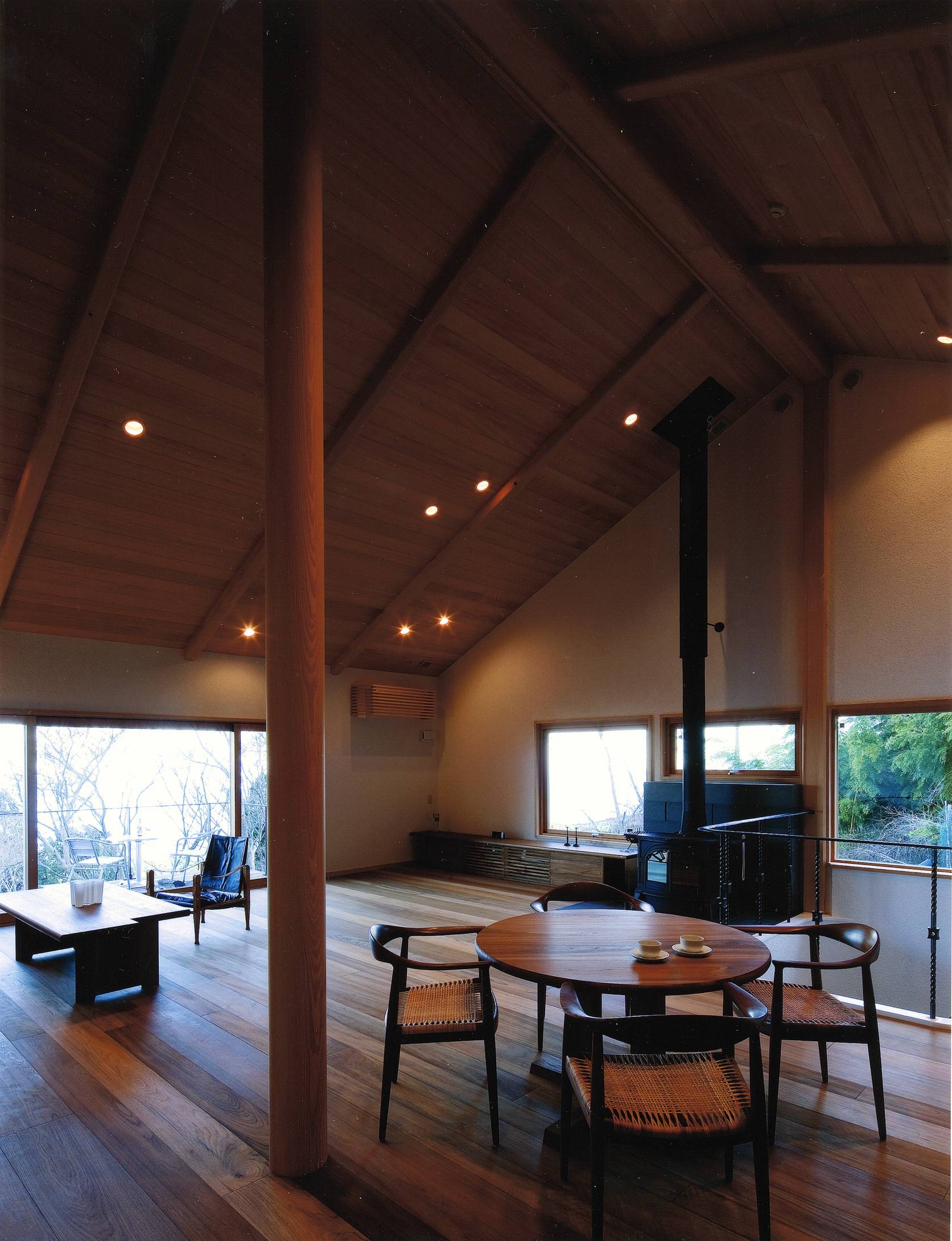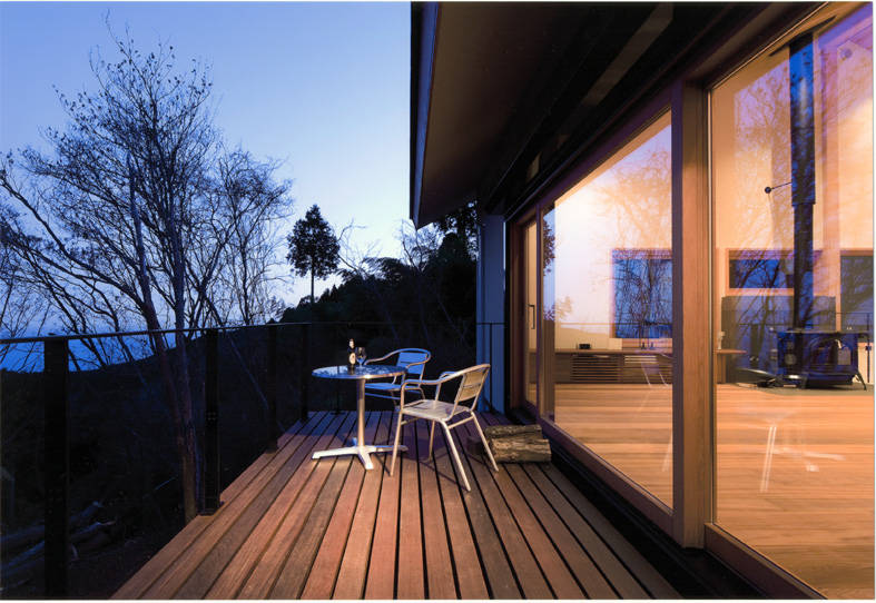 高原の木々に囲まれ、東に相模湾を臨む天城高原に建つ別荘である。1階はRC造として高基礎を兼ね、上に木造部分をのせて地面より高さを確保し、雪や寒さ対策の一つとしている。 十分な断熱材や暖房設備は施しているが、春夏秋冬いつでも窓を大きく開き、自然の豊かさ、厳しさを楽しめる別荘である。