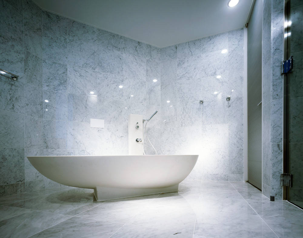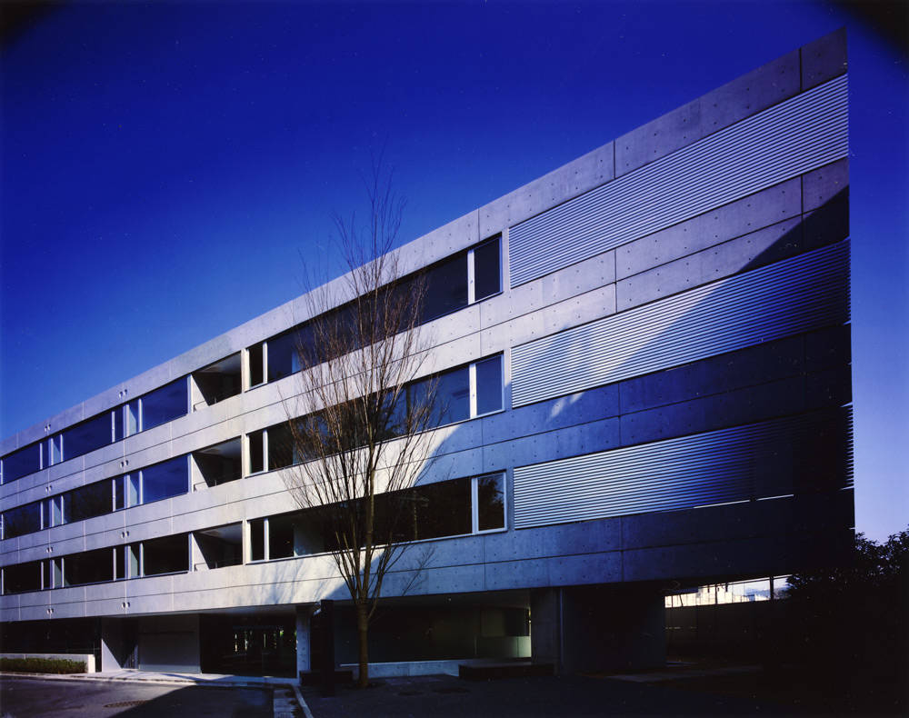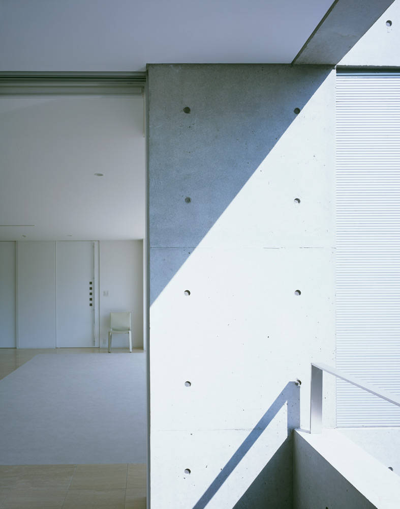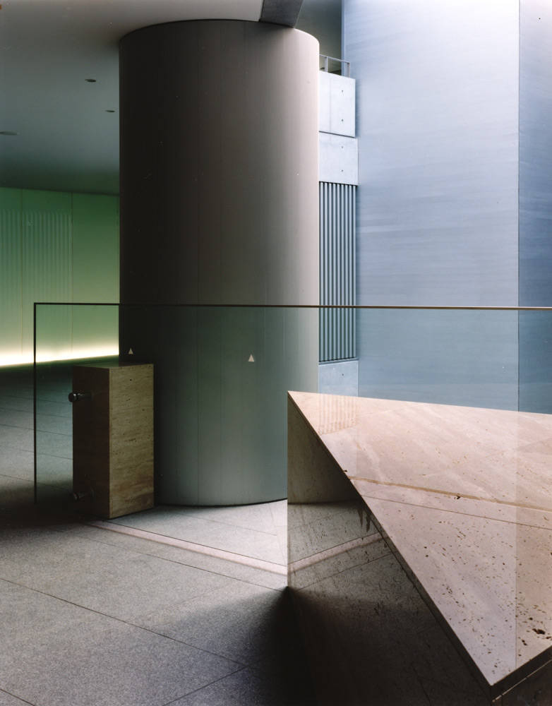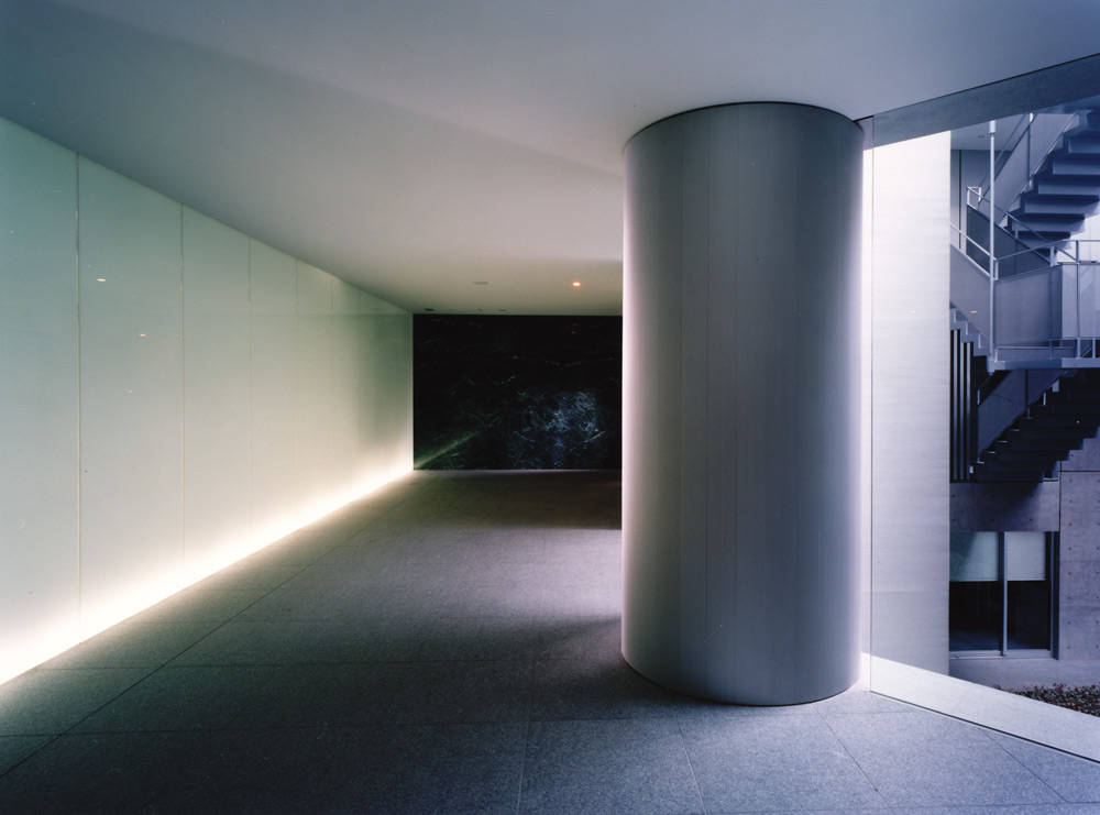 この建物は、デザインの最先端を行く街、原宿に計画された、店舗+事務所+集合住宅の複合施設であります。空間デザインにあたっては、シンプルな幾何学的構成を基本として、建物全体が彫刻的な美しい空間となるように演出され、シャープさと素材感の特徴を最大限に生かすことを意識し、シンプルであるが厳密に計算されたプロポーションからなる審美的な世界を演出しています。ここを訪れた人が、小刻みに変化する新しい空間体験ができるようなシナリオをデザインしています。