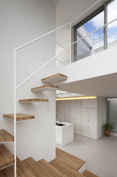 陽だまりスペースや吹抜などを随所に設けることで、光と空間の変化や猫の動きを日々楽しみながら暮らせる計画としています。2階と屋上とを、吹抜を介して視覚的に繋げることで、広がりが感じられる快適な住居空間となっています。■構造規模 鉄骨造 2階■建築面積 82.33m2■構造事務所 本岡構造設計■写 真 中村 絵