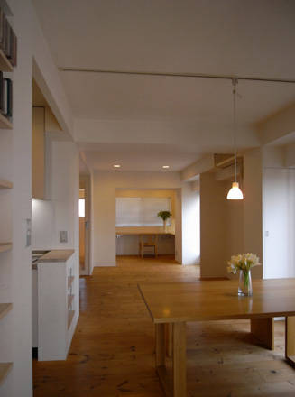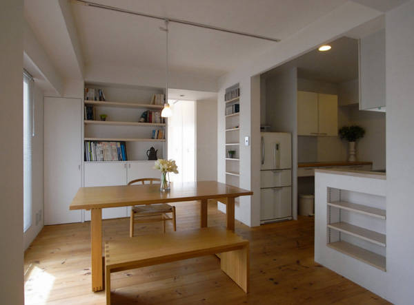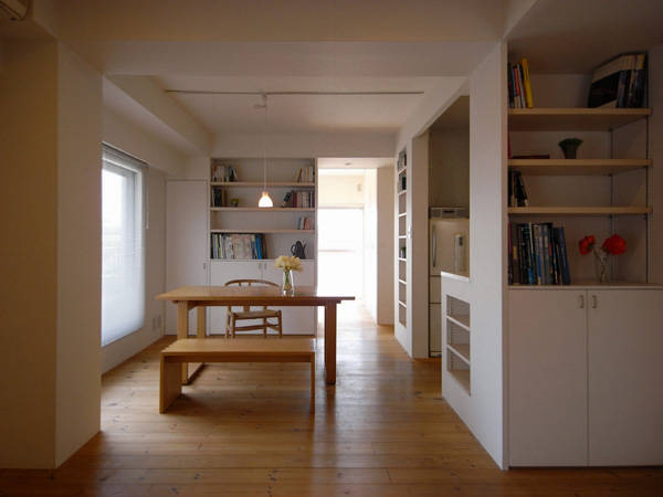 3LDKを2LDKに変更し、LDKを広げています。ワンルームの広い空間をつくることで、開放感のあるスペースに