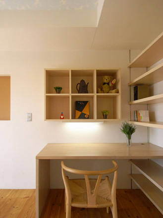空間を、薄いランバーコアや家具で仕切ることで、軽やかでありながらも収納量の多い機能的な住宅です。