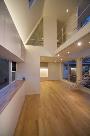 両世帯とも、デッキスペースを介して内外空間が相互につながり、光や風、自然を感じられるとともに、防犯性やセキュリティを確保しながら、緑や景観を取り込んだ、開放的な住宅です。