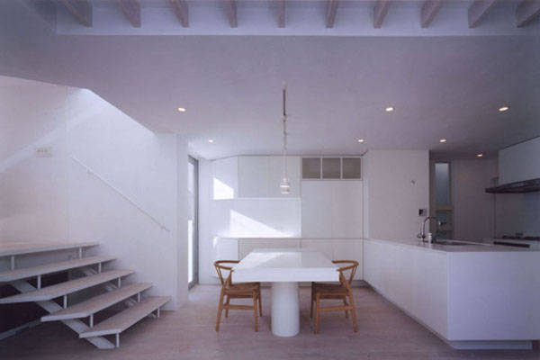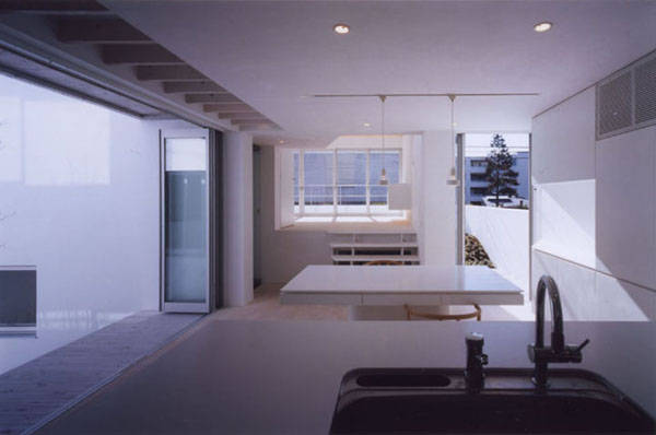 もともとある敷地のレベル差を利用し、各部屋が中庭を囲むようにしながらスキップフロアで相互につながる構成としています。
