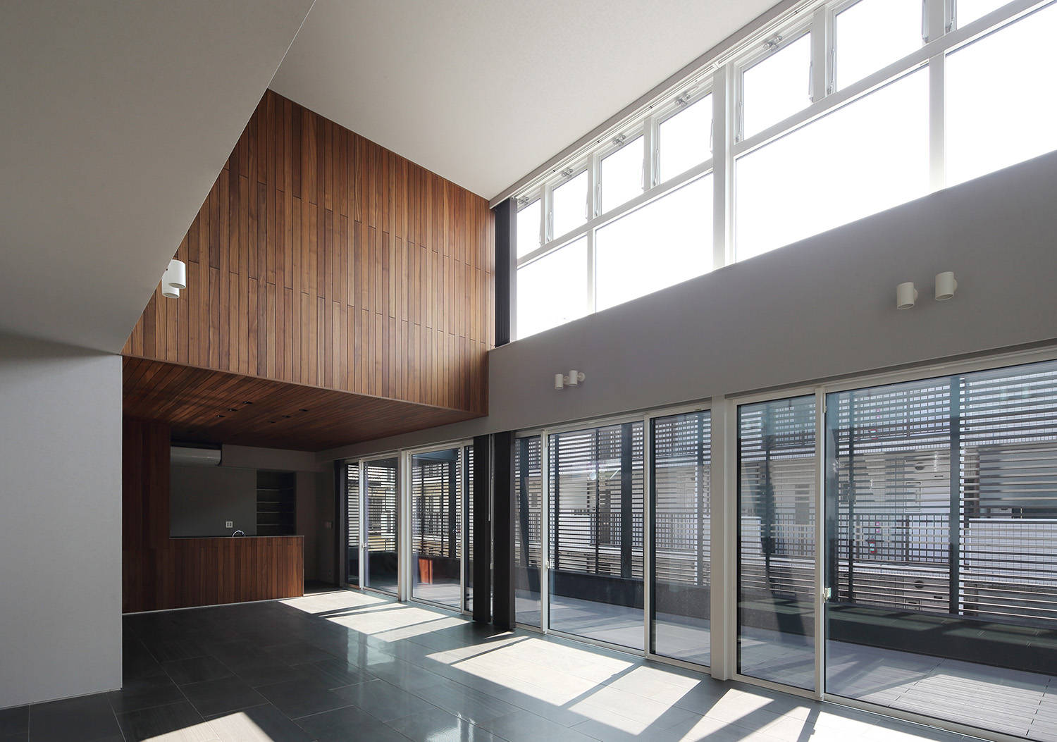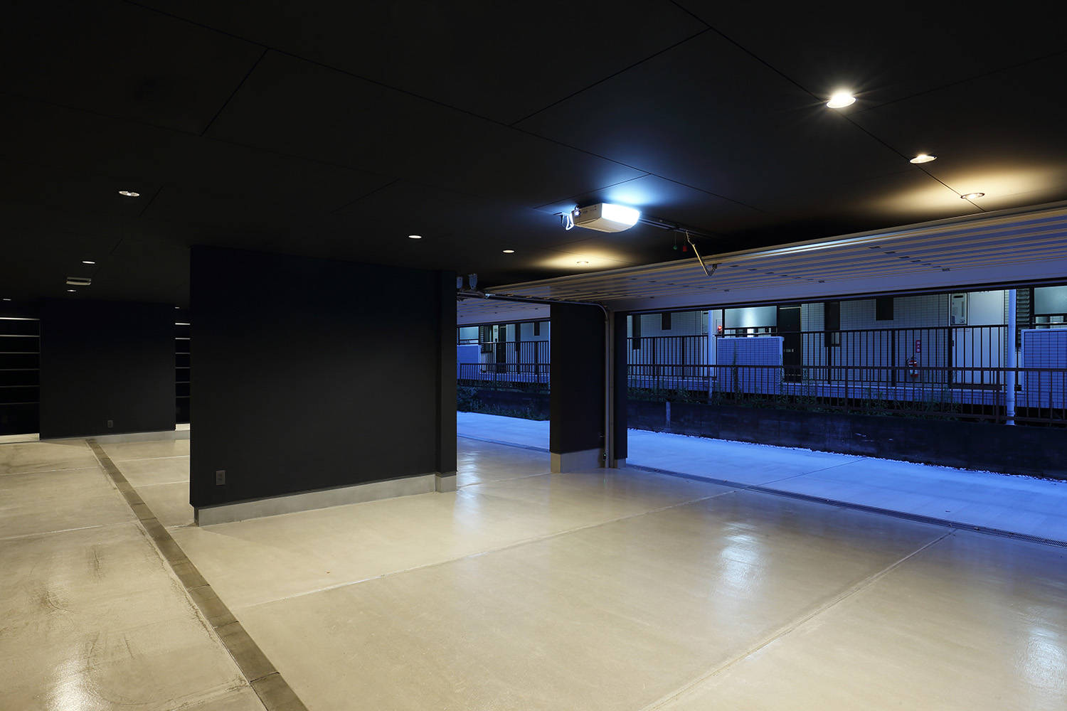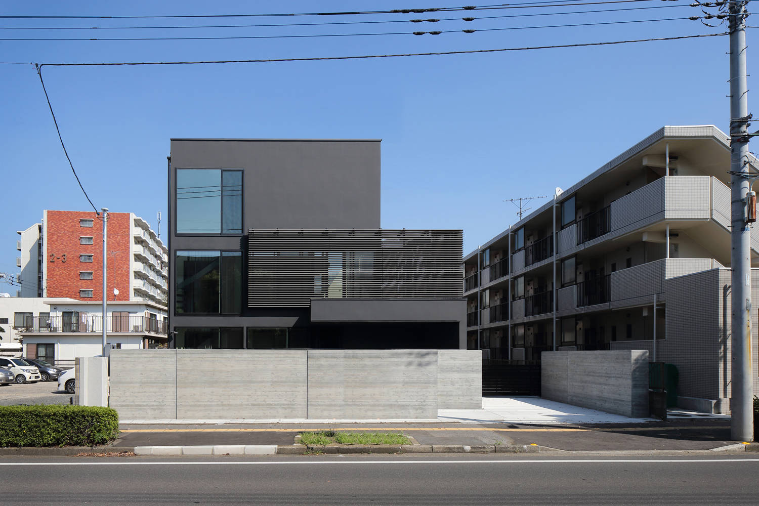 4台分のガレージや大きなテラス、プライバシーの確保等が求められた。道路に面するようにガレージを設けてしまうと大きなシャッターが並び美しくない。
