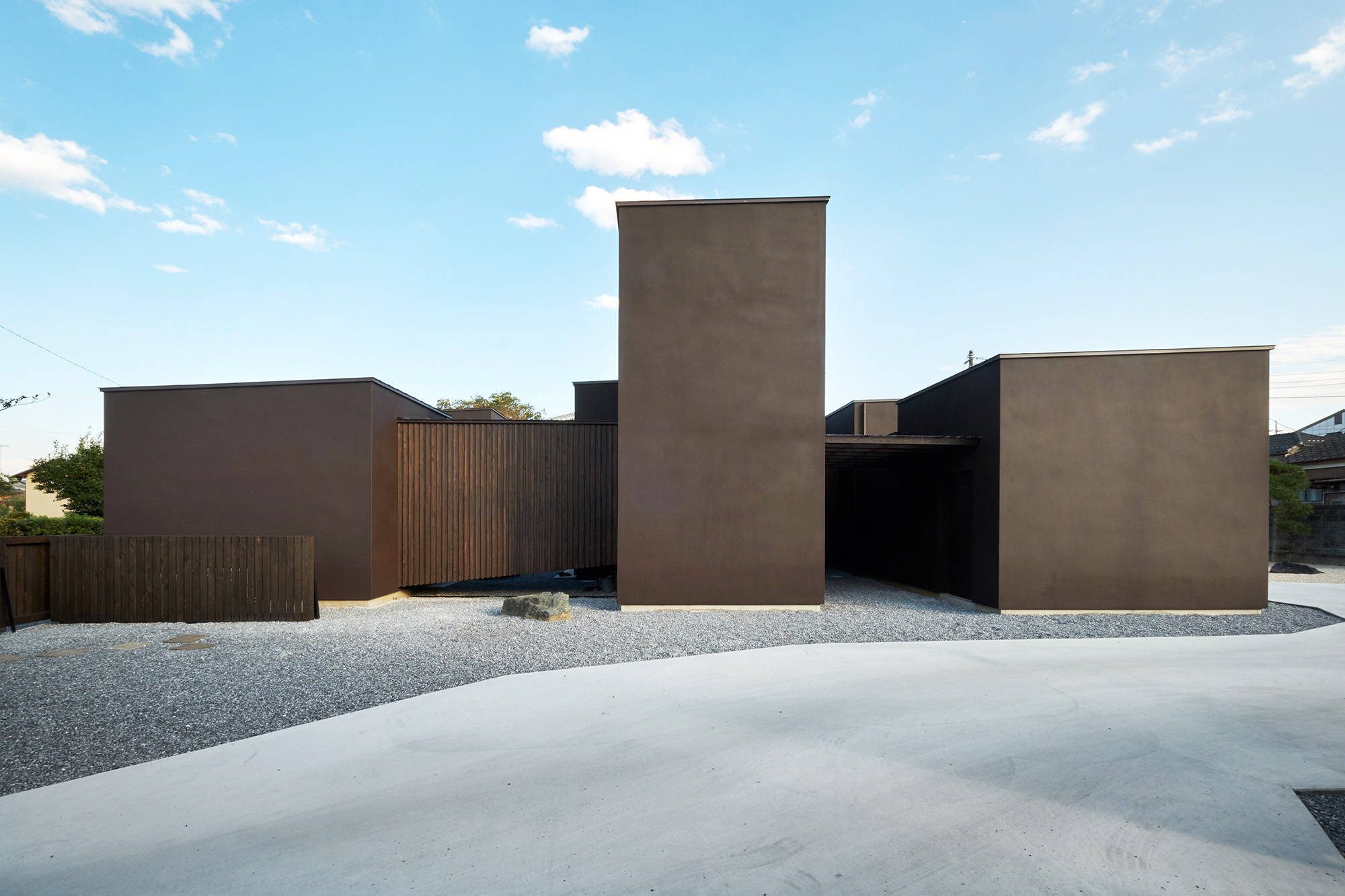 立体的に敷地を埋める外郭は外と内の境界線を曖昧になぞり、奥行きを深め、抽象的な美を感じさせる遠景と近景を生んだ。開口部が少ない抽象的な箱は確かな存在となり、まるで自然淘汰のように’’風景’’が作り出されるようでもある。