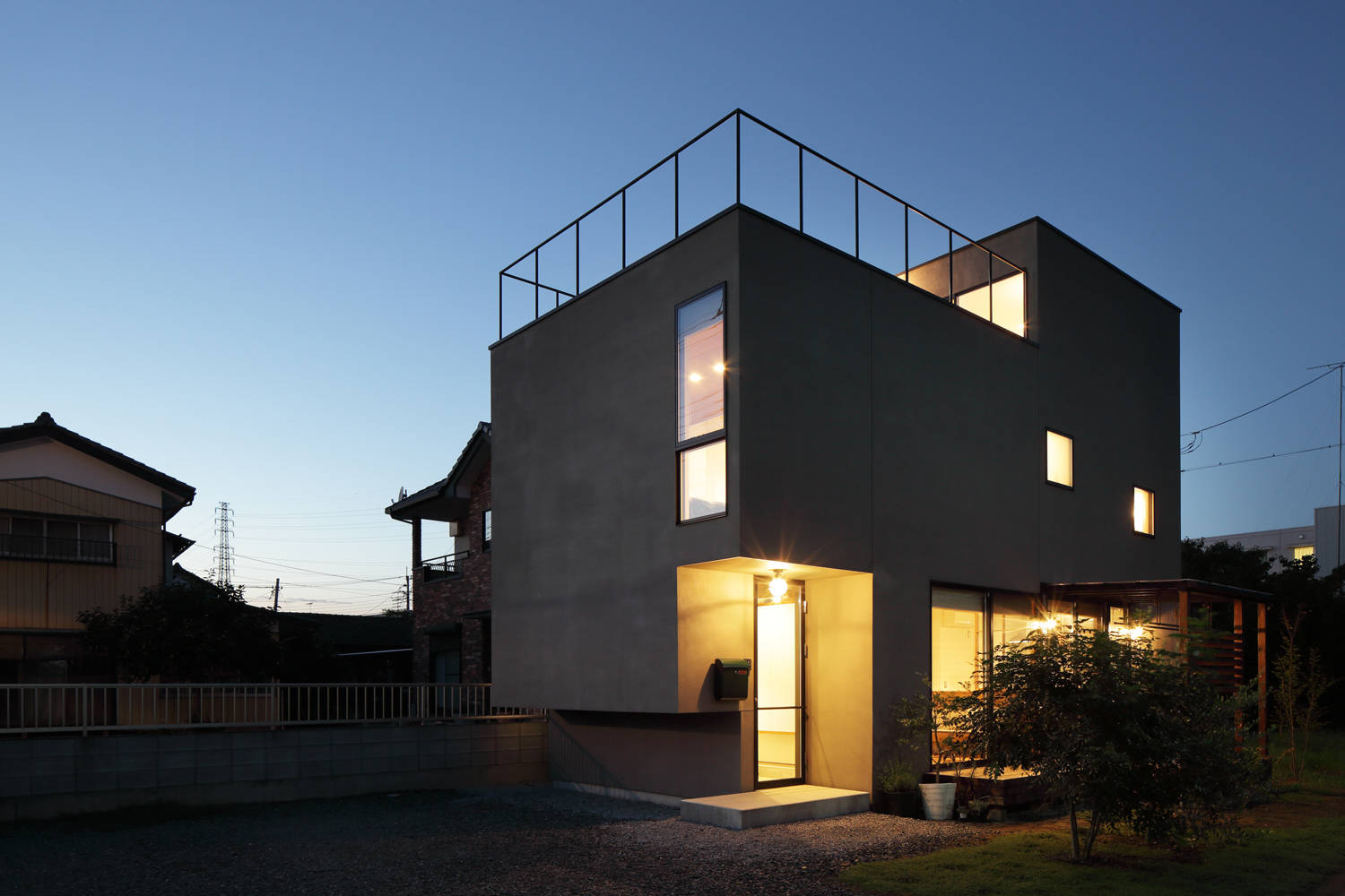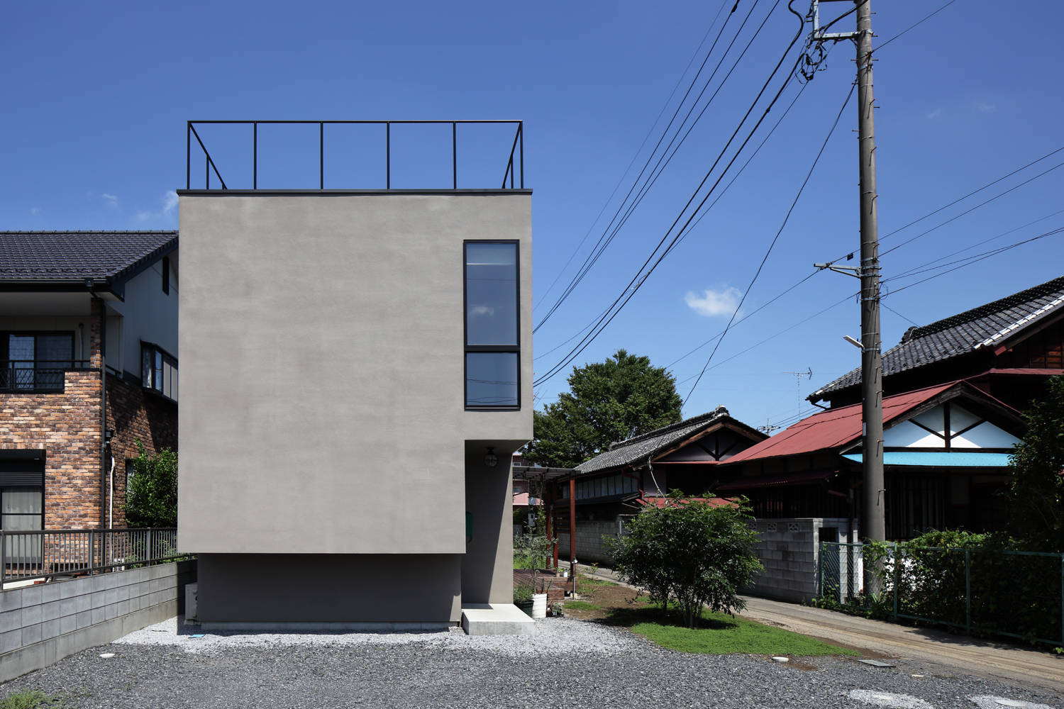 館林駅から徒歩数分、大きな道路から一本入った閑静な場所にご夫婦と2人の娘さん、4人の住まいが求められた。予算と施主の質感への拘りから面積は100㎡にも満たない計画になる事が想定された。