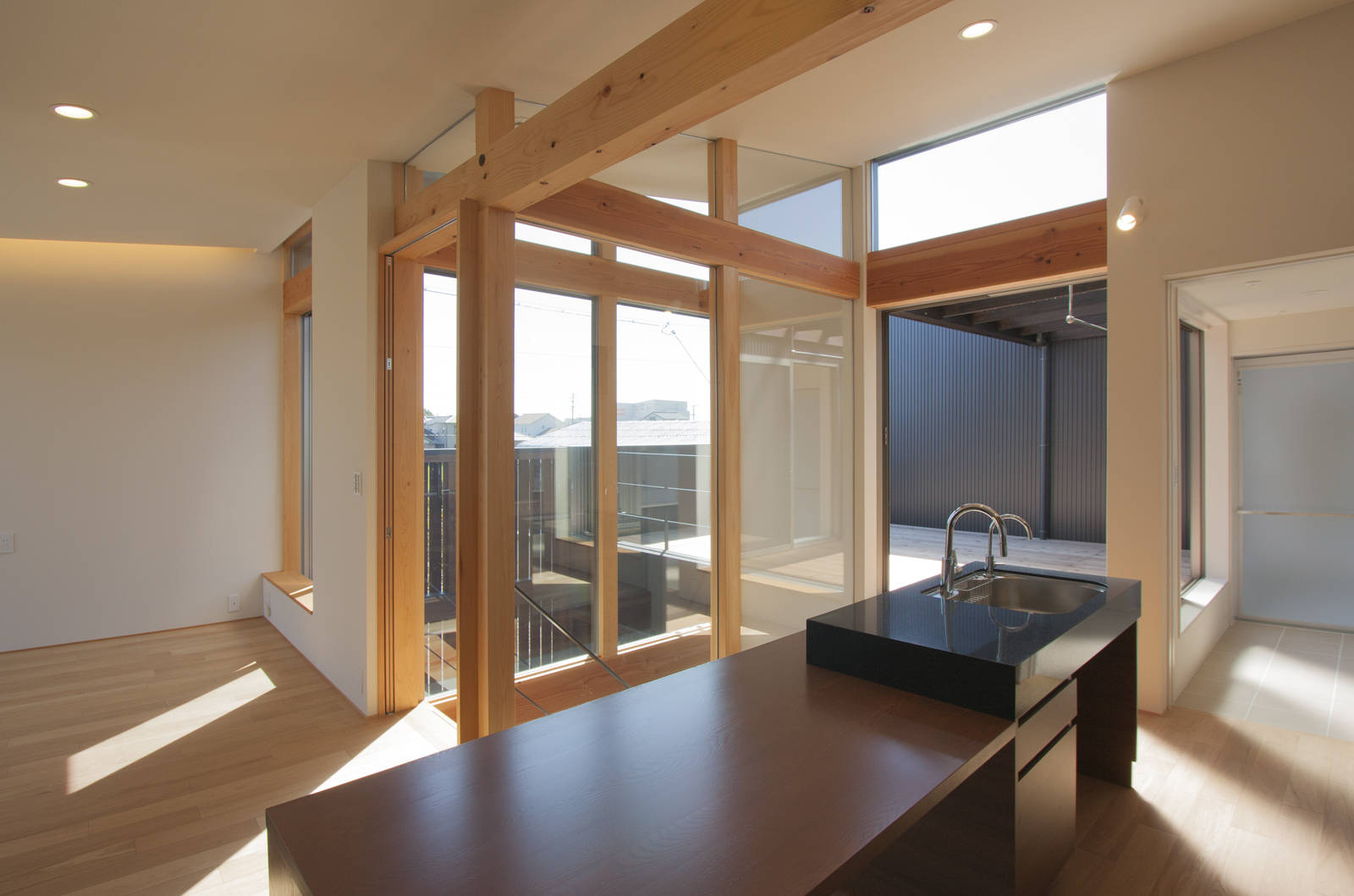 最終的に1階は個室、2階はLDK、家の中心には1、2階を貫く中庭を配し、2階にはもう一つの庭としてルーフテラスを配した。それぞれの庭は外部からの視線を切っているため、昼夜を問わずオープンな生活ができるようになっている。