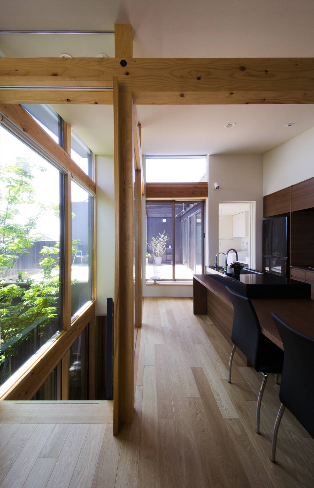 家のどこに居ても眺めることができる中庭は紛れもなく家の重心である。この一本の樹と共に末永く四季を重ねて欲しいと想う。