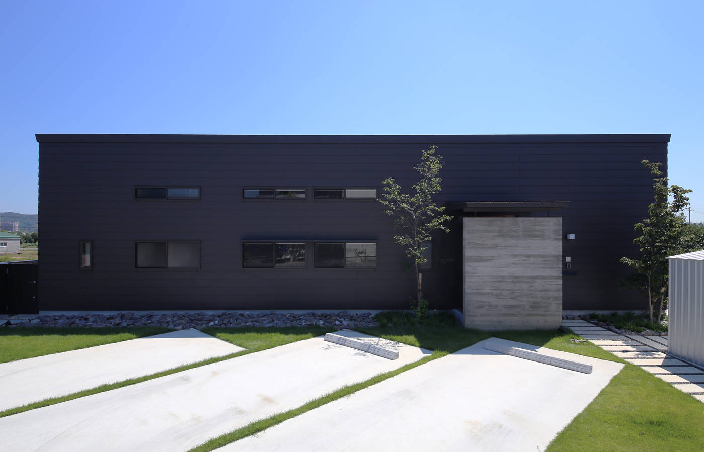 敷地は調整区域に位置し、幹線道路が近くを通っているものの、極めて良好な住環境を保っている。この敷地に若夫婦二人と子供二人のための家を模索した。