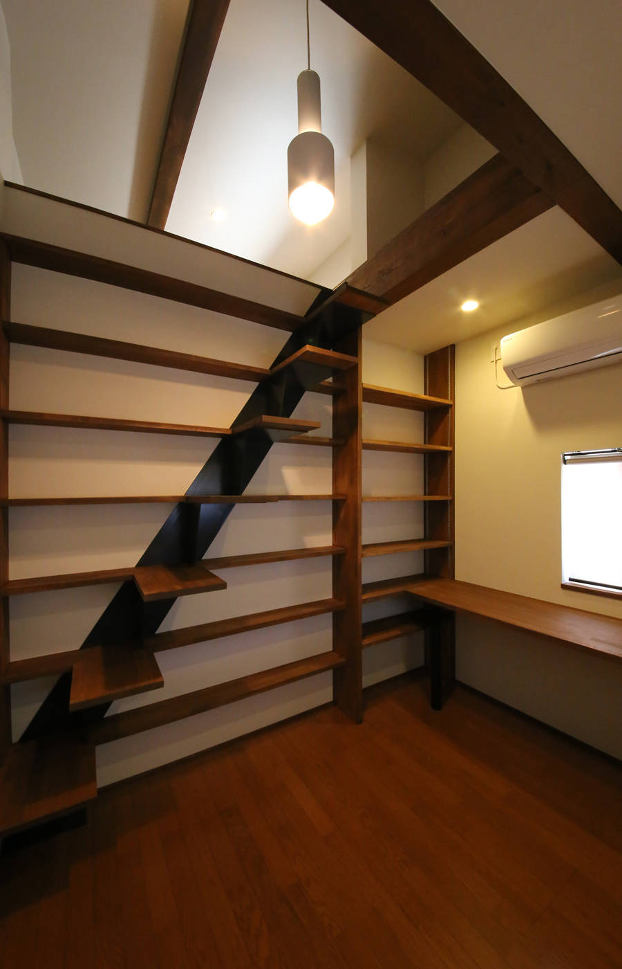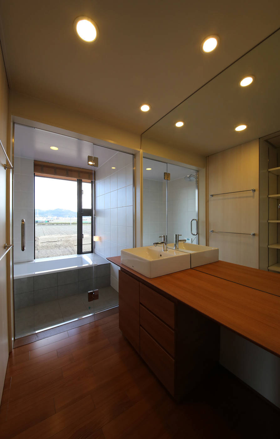出来るだけ広い空間を求められていたため、廊下を無くすことにより主となる 空間の広さを確保した。各個室や水廻りへドア一枚でアクセスできるようなプランは生活の利便性だけでなく、家族四人が一つ屋根の下に住まうということを無意識に感じさせてくれる気がする。