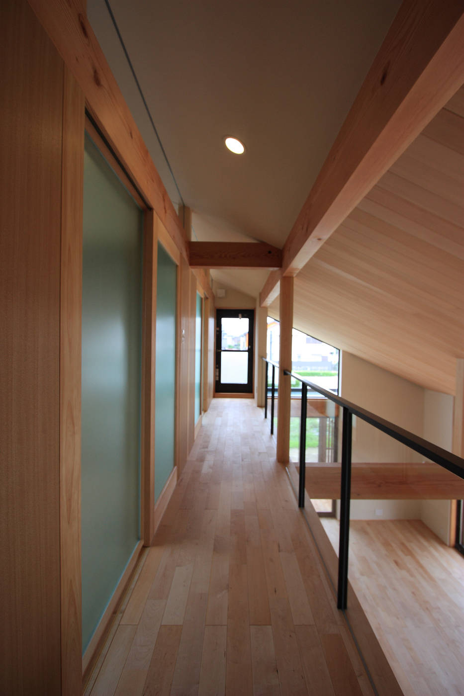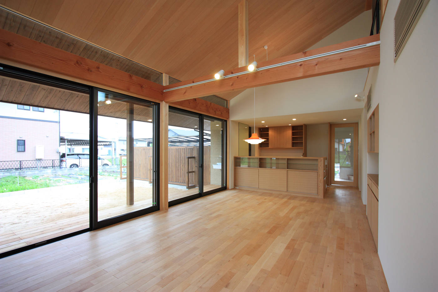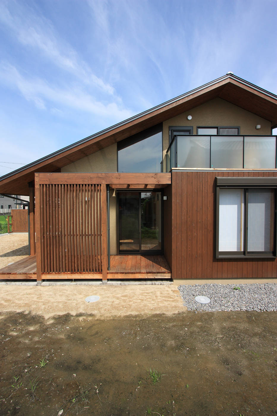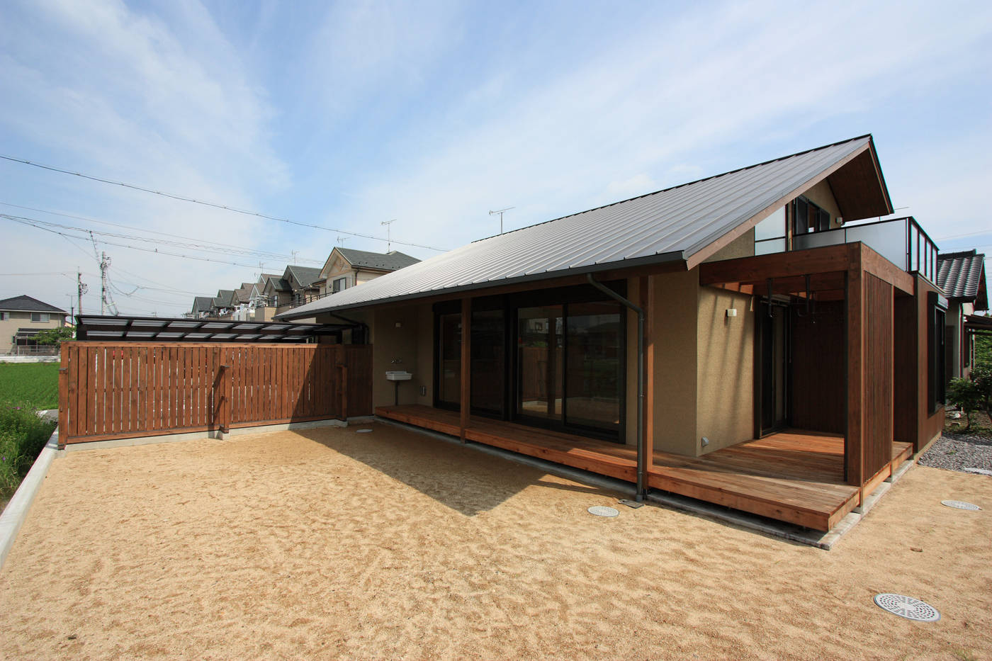 土壁の風合いを持った外壁材だけでなく、深い庇と軒下空間、回廊のような濡縁、花火も見られる月見台など、散りばめた仕掛けを挙げれば切りが無いが、すべての方向性は同じ点に向かっている。