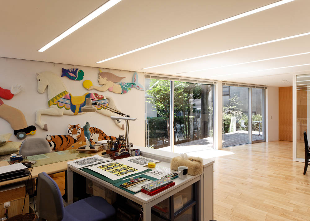 東京閑静な住宅街に建つ2世帯住宅。アトリエやホームオフィスを内包した多機能な住宅。photo : 日暮 雄一