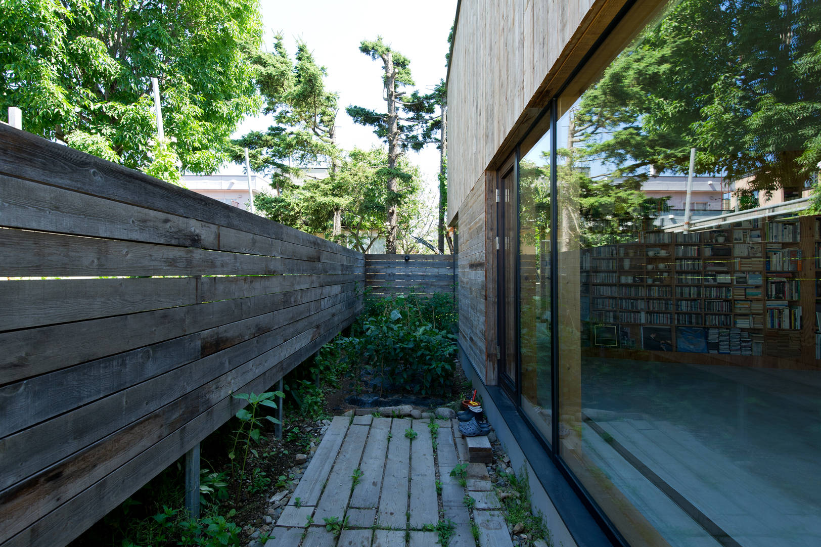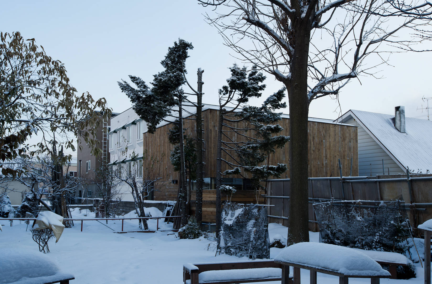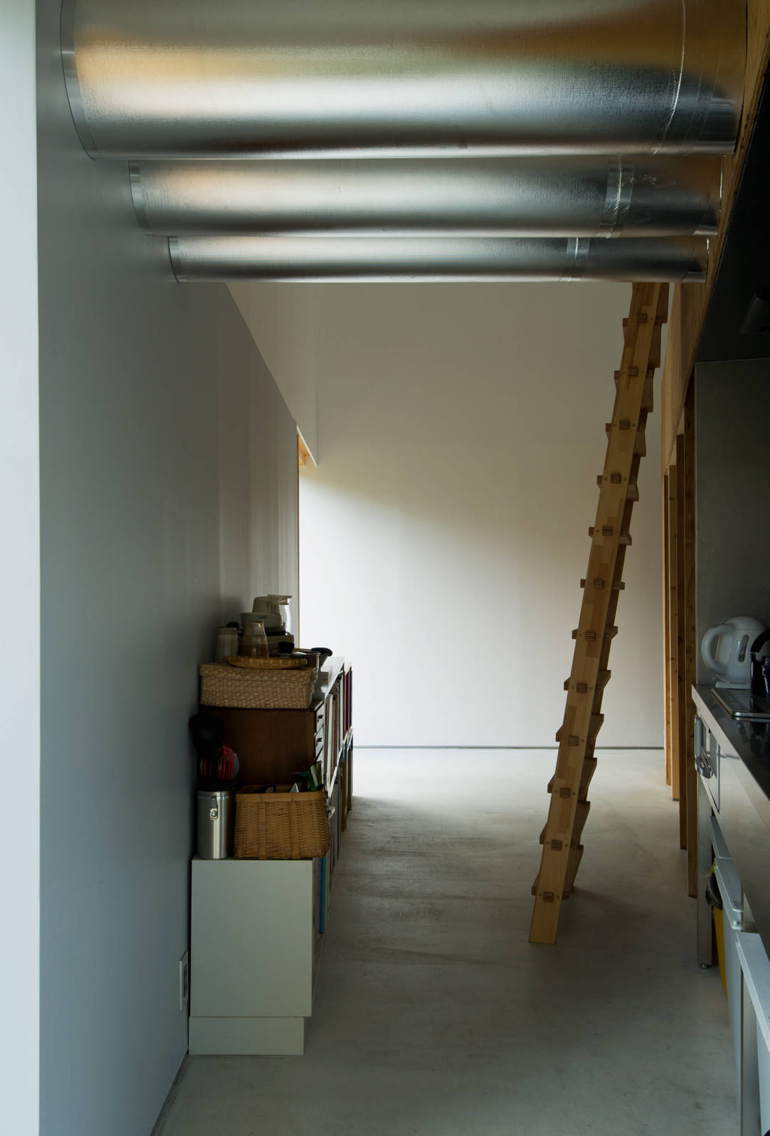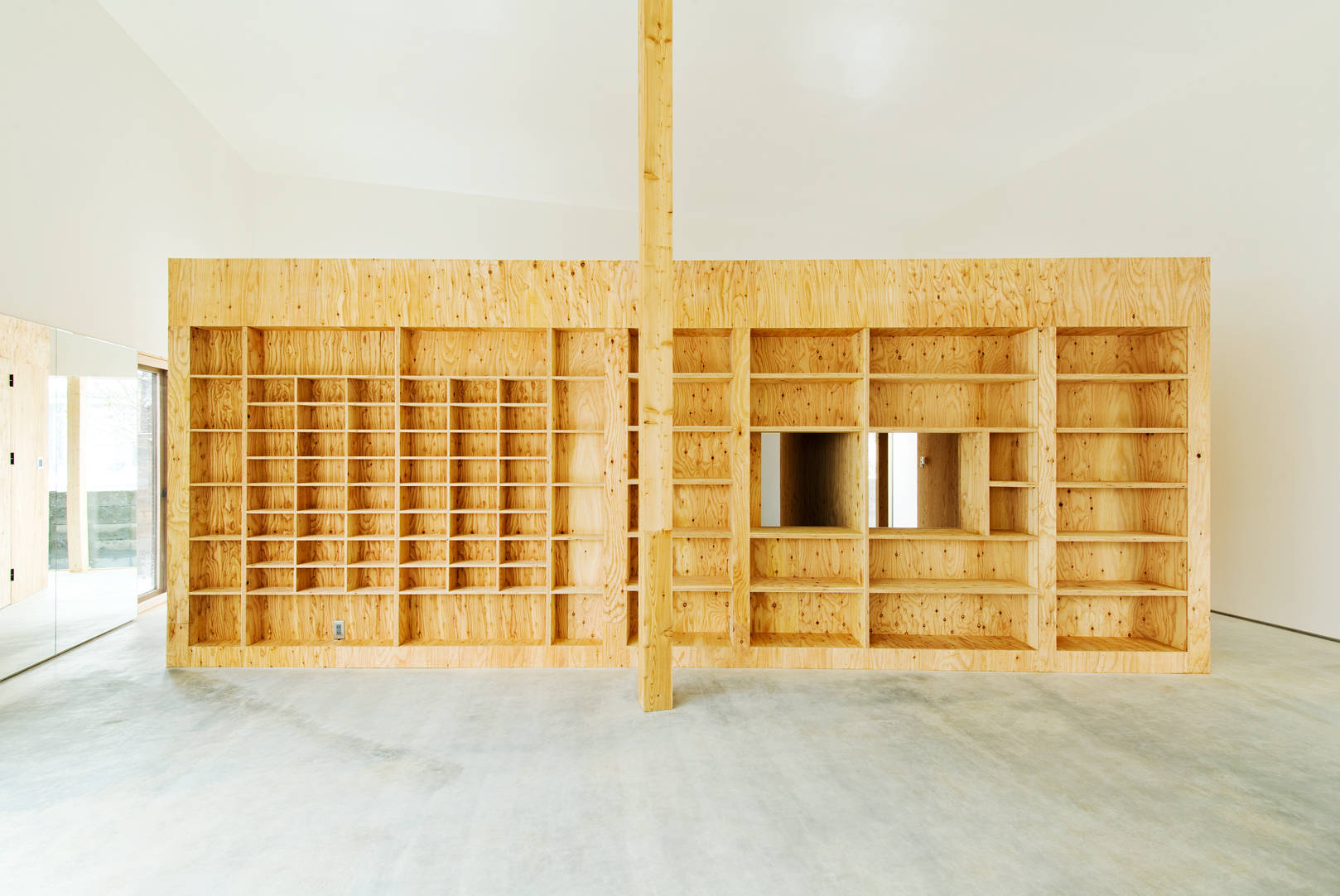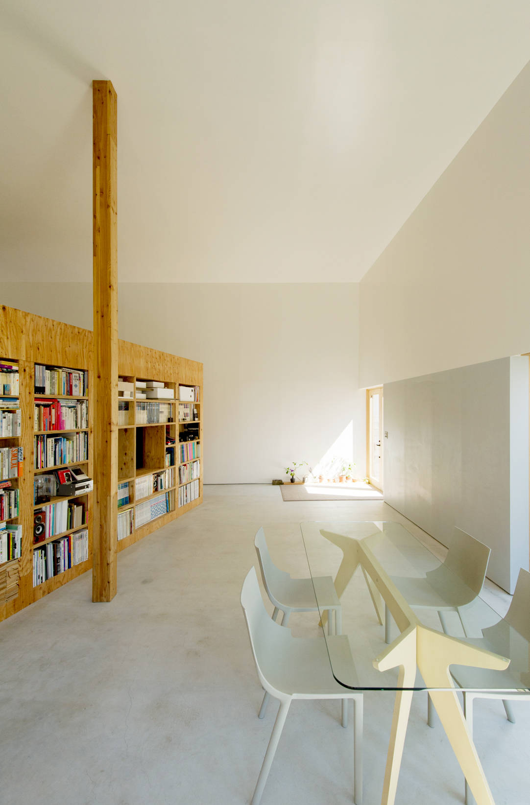 正方形平面の箱の中に箱が置かれた気積が大きな平屋の家