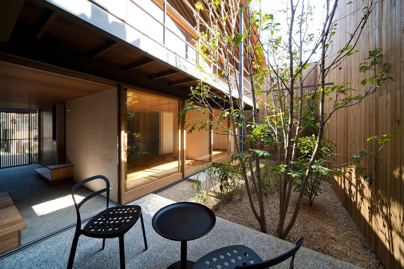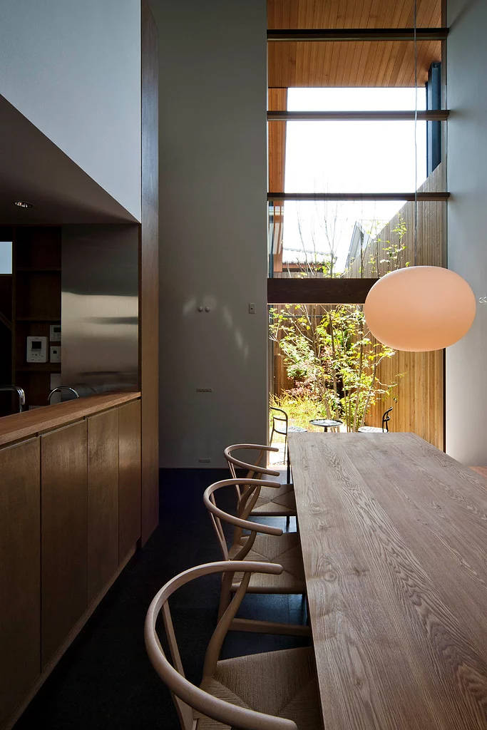 中庭まで抜ける通り土間で 世帯を分割しています。