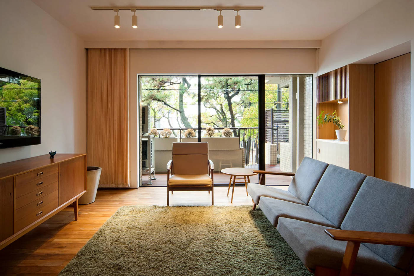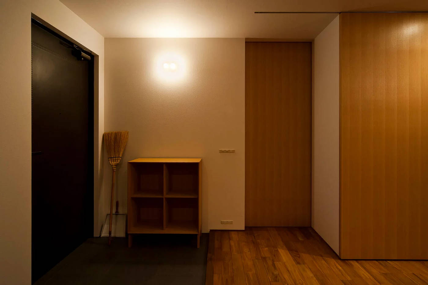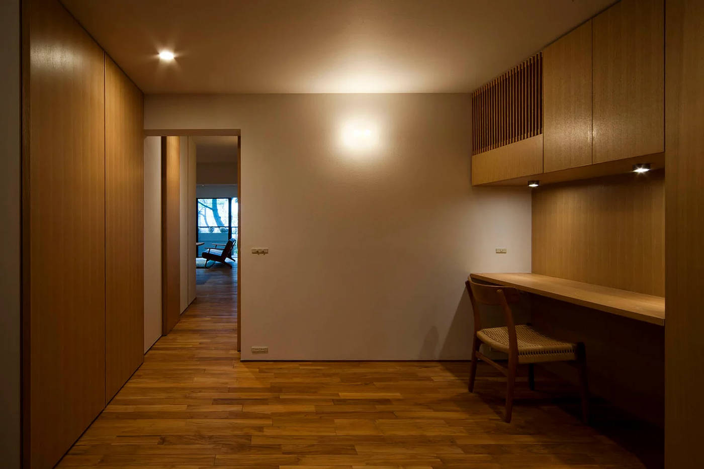 室境界にあった構造壁に絡ませて ダイニングテーブルを造り付けました。