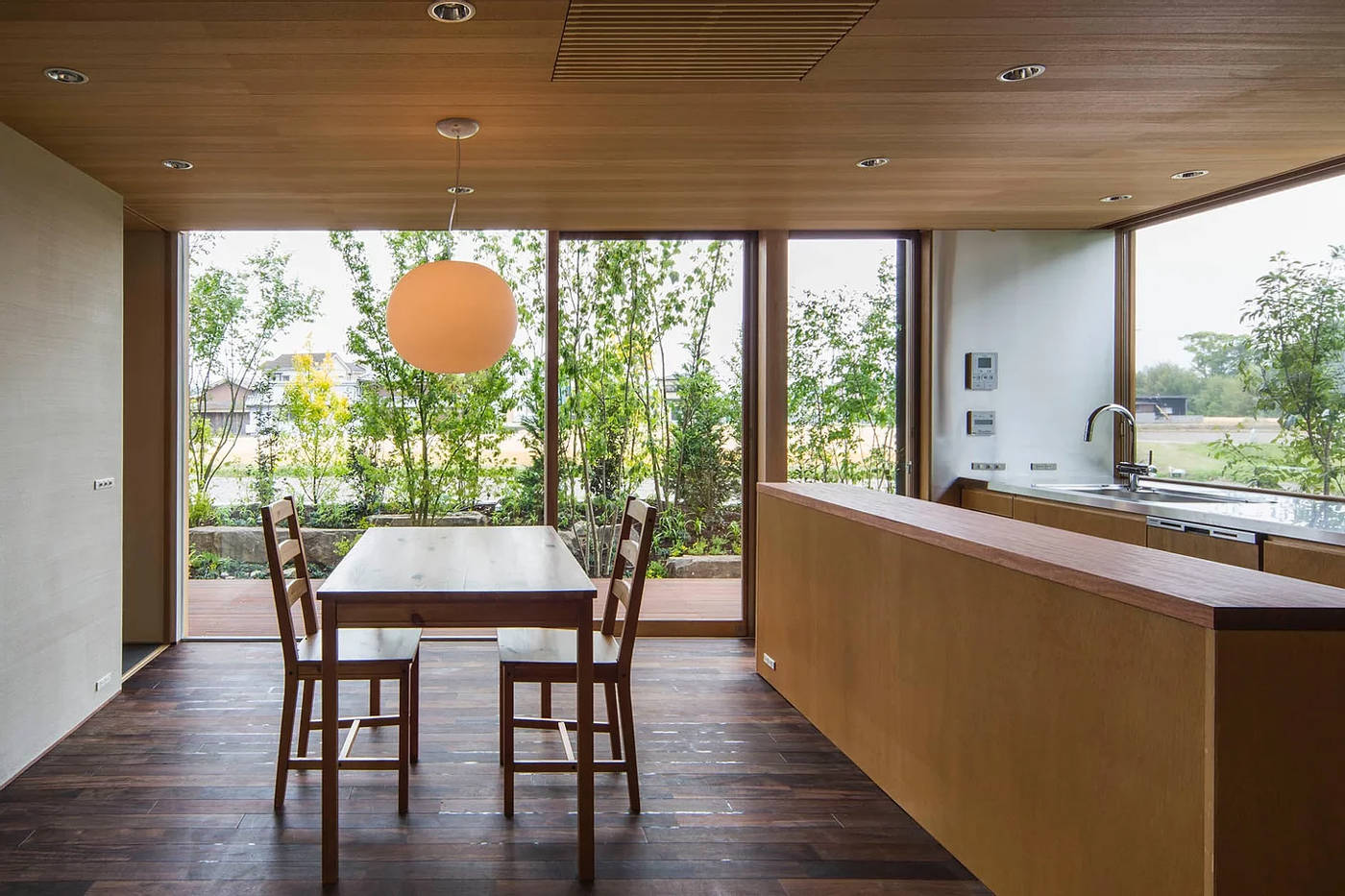 古い住宅街の端部で南側に田園が広がるのどかな敷地に建つ夫婦二人のための住宅です。