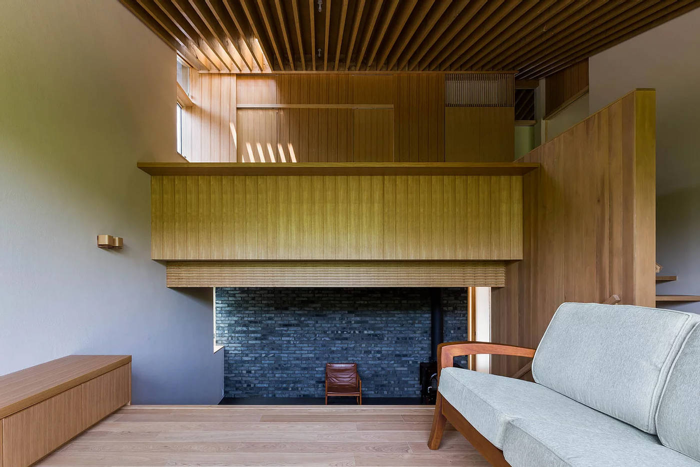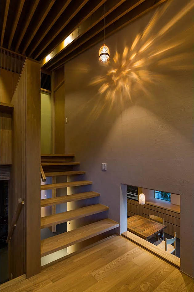地盤面が、前面道路から1.7m上がった高さにあったため半階ずつフロアを重ねていくスキップフロアの構成が自然と導き出されました。