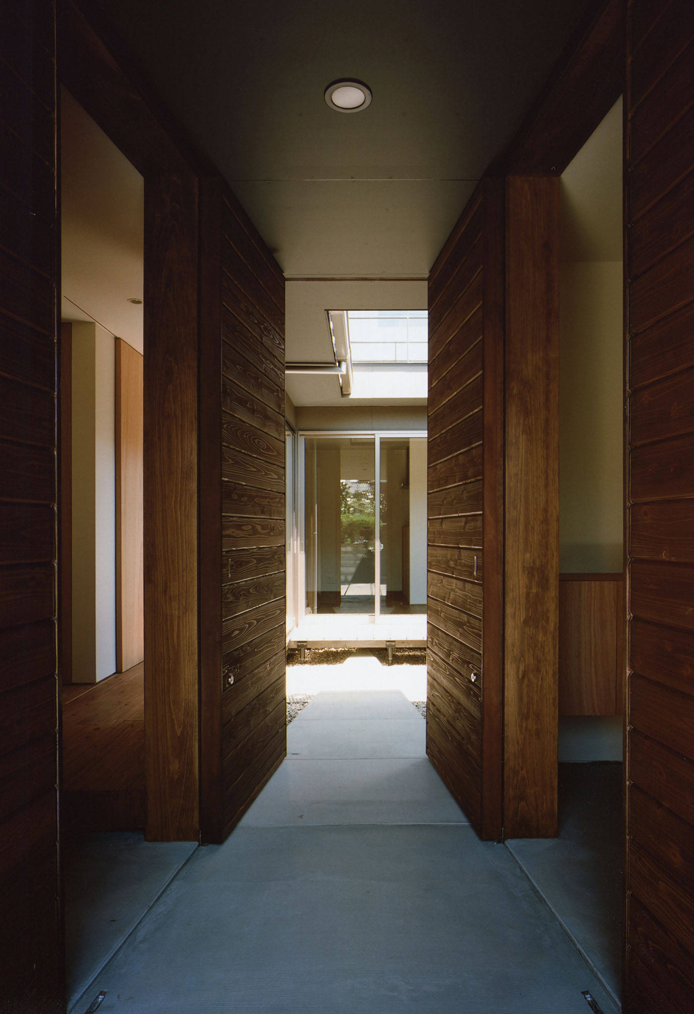 この「繋がり」を意識しながら設計を進めた結果、玄関アプローチから繋がる中庭を家の中心に設け、この中庭を中心に日常生活が展開することとした。