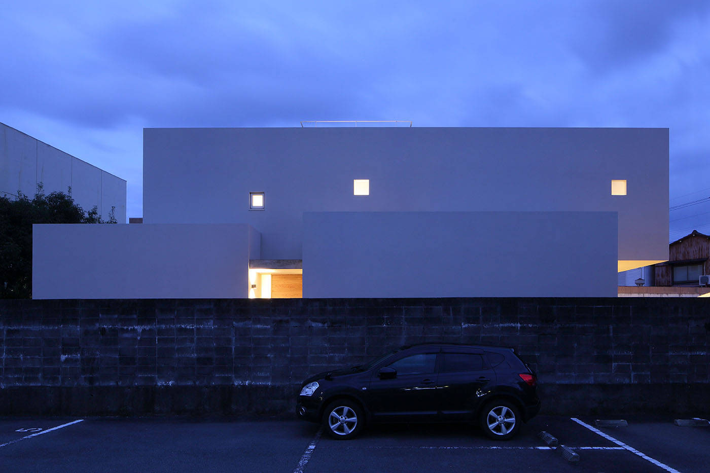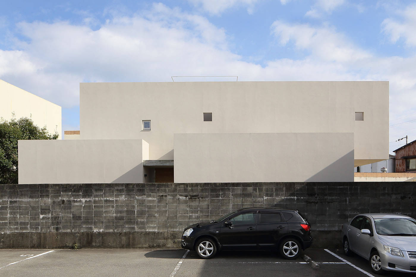 徳島市内の海よりの住宅街の中に建つ4人家族のための鉄筋コンクリート造、2階建ての住宅である。