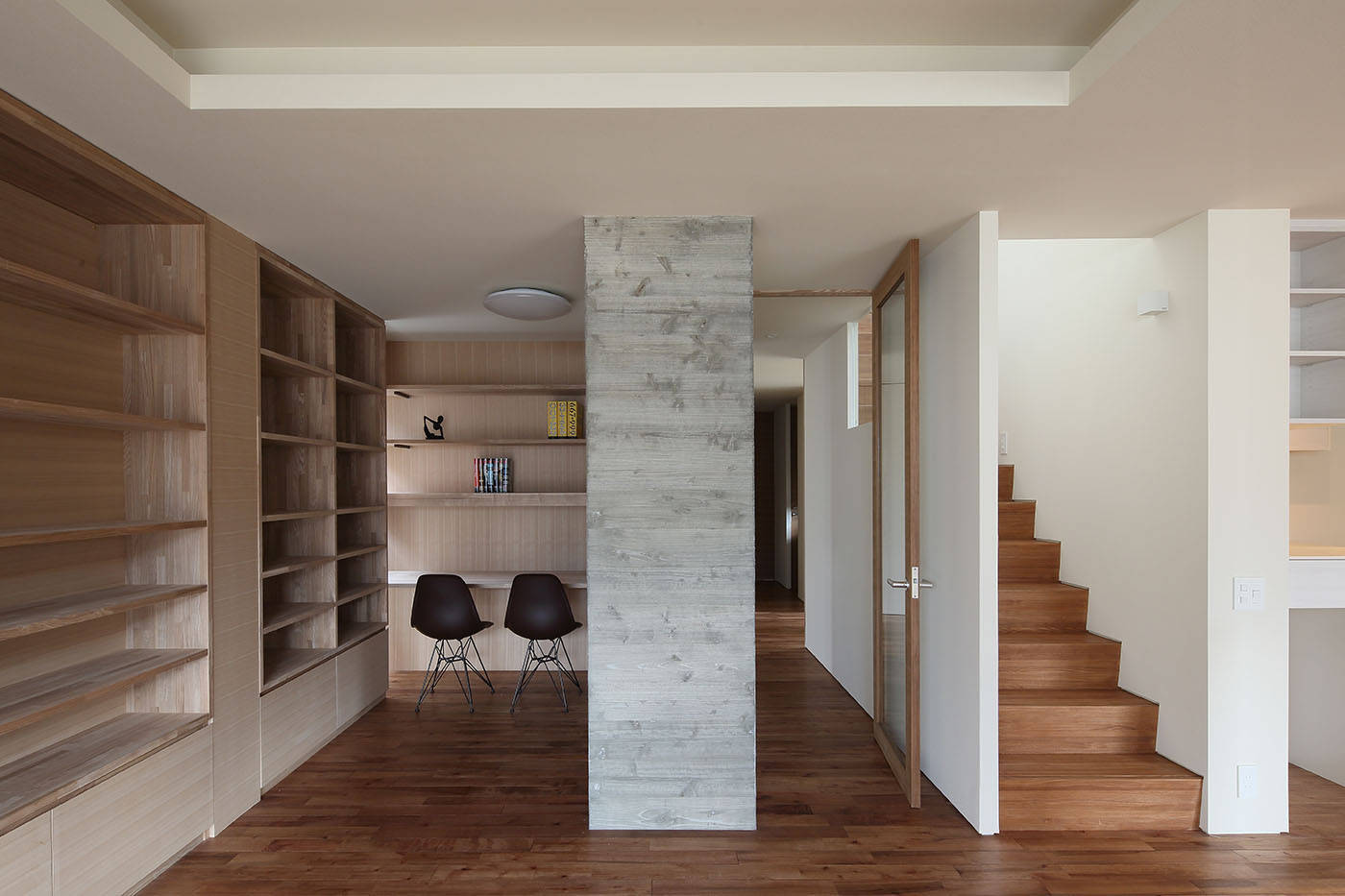 そして、これらの諸条件から導き出された形状は複数のインナーテラスを含む3つのヴォリュームを主体とし、それらがズレながら重なり合うことで生まれる豊かな内部、外部空間を併せ持つ住宅である。