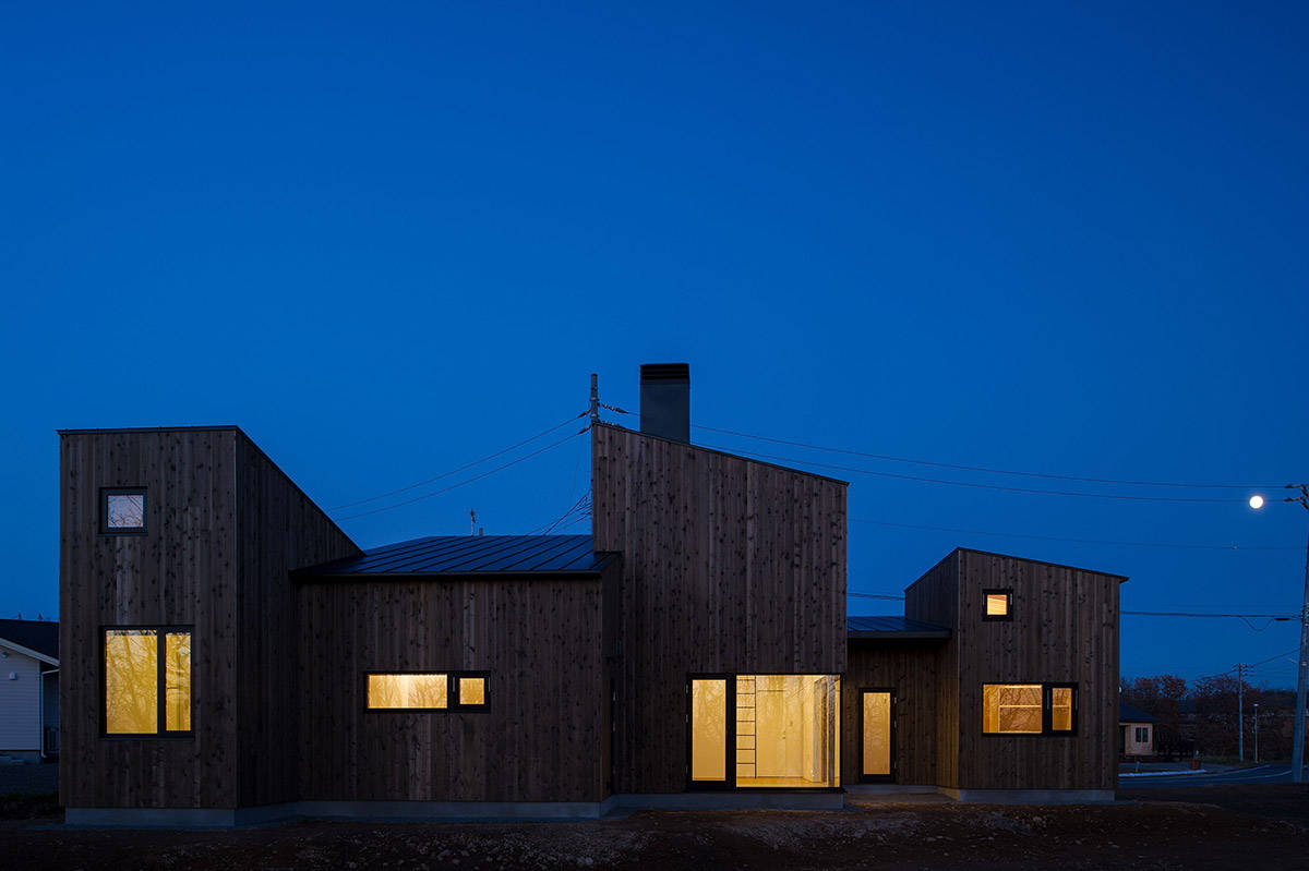 5つの片流れ屋根で構成された新冠の家