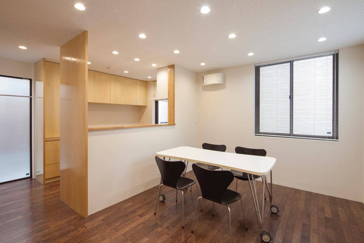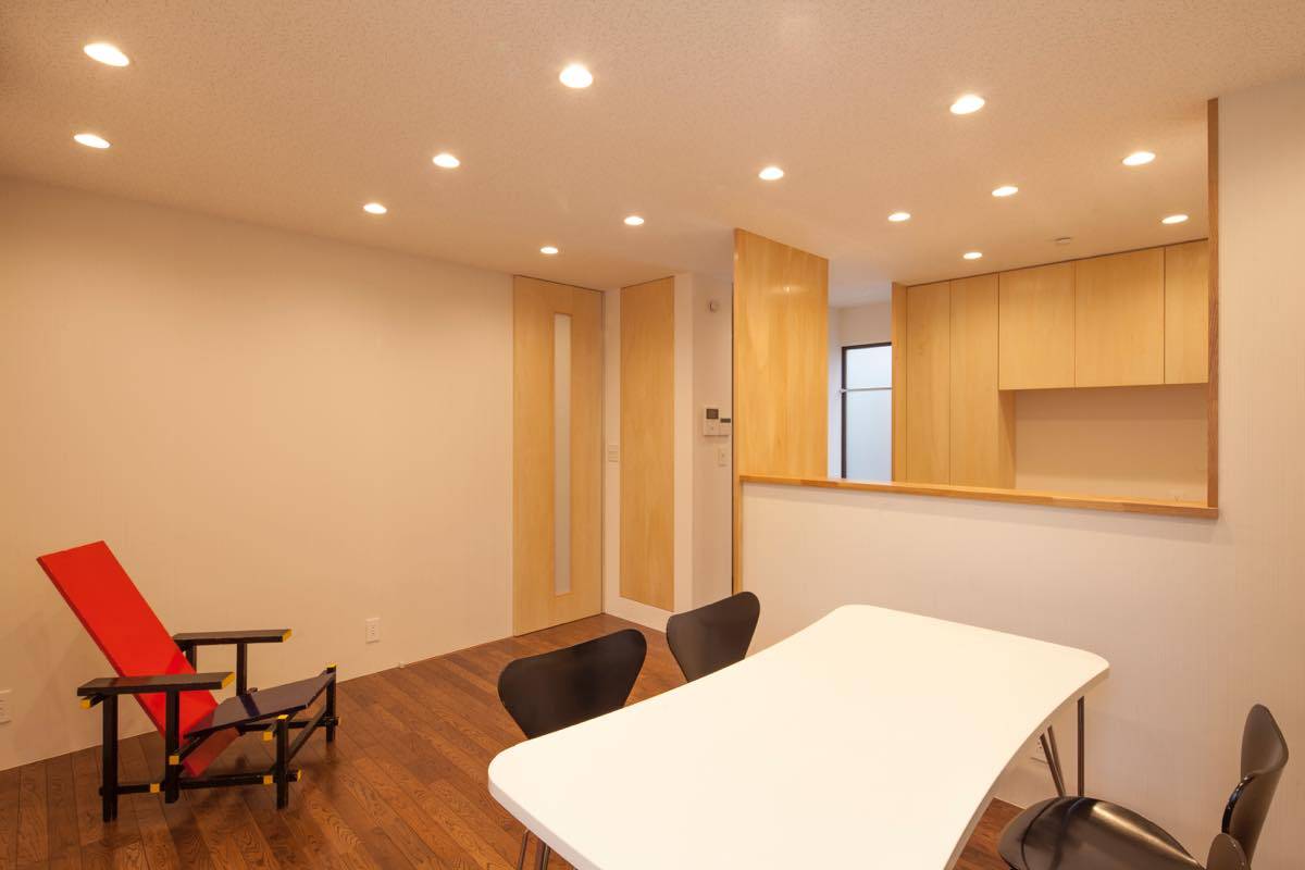 1Fの工作室は屋外の作業場とも行き来ができ、来客時には応接室を兼ねることから玄関近くに配置して、「おしゃもじプラン」を実践した。