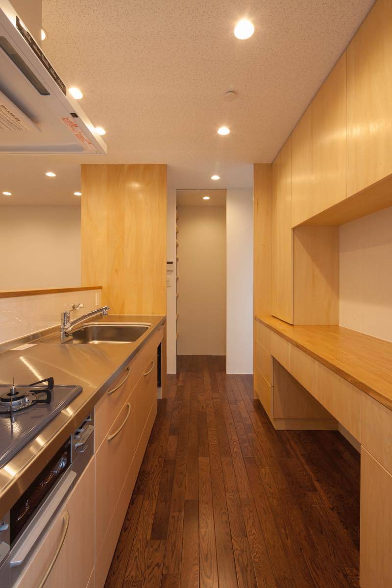 天体観測バルコニーにいたる廊下は室内物干し場でもあり、直接WIC(ウォークインクローゼット)へ服の出し入れができる。主寝室からも同様に内外3方向からWICを利用する。