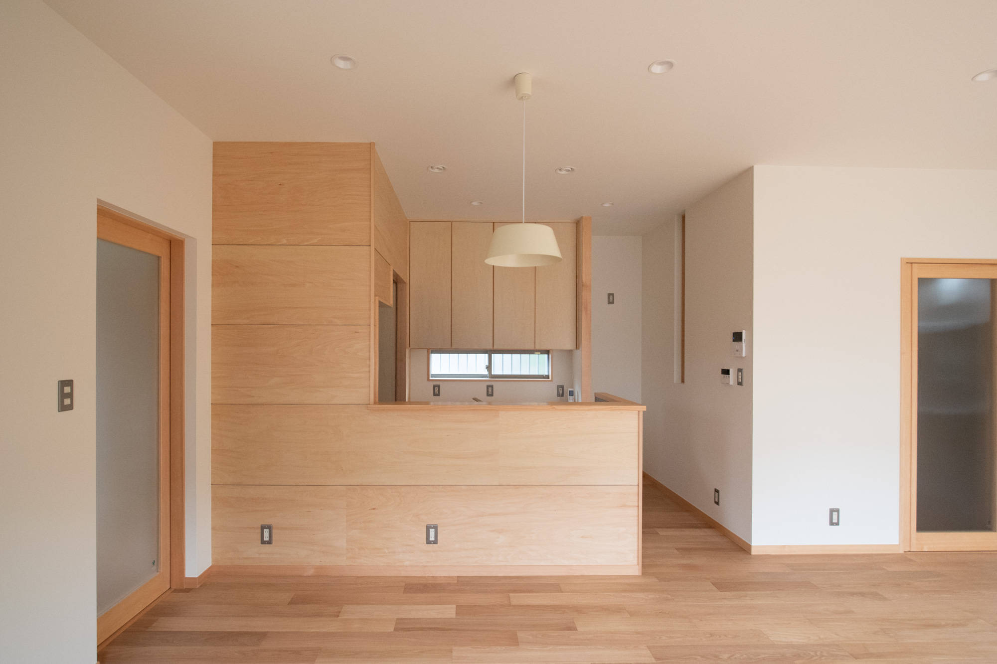 また、リビングをすっきりさせるために、あると便利なのが、奥行きが300mm〜450mmの作りつけ収納です。薬箱やティッシュの買い置き、子どもたちのちょっとした被替えなど、すぐに手の届くところにあるとリビングにモノが溢れずにすみますし、あまり置きたくない家具で部屋が狭くなることもありません。
