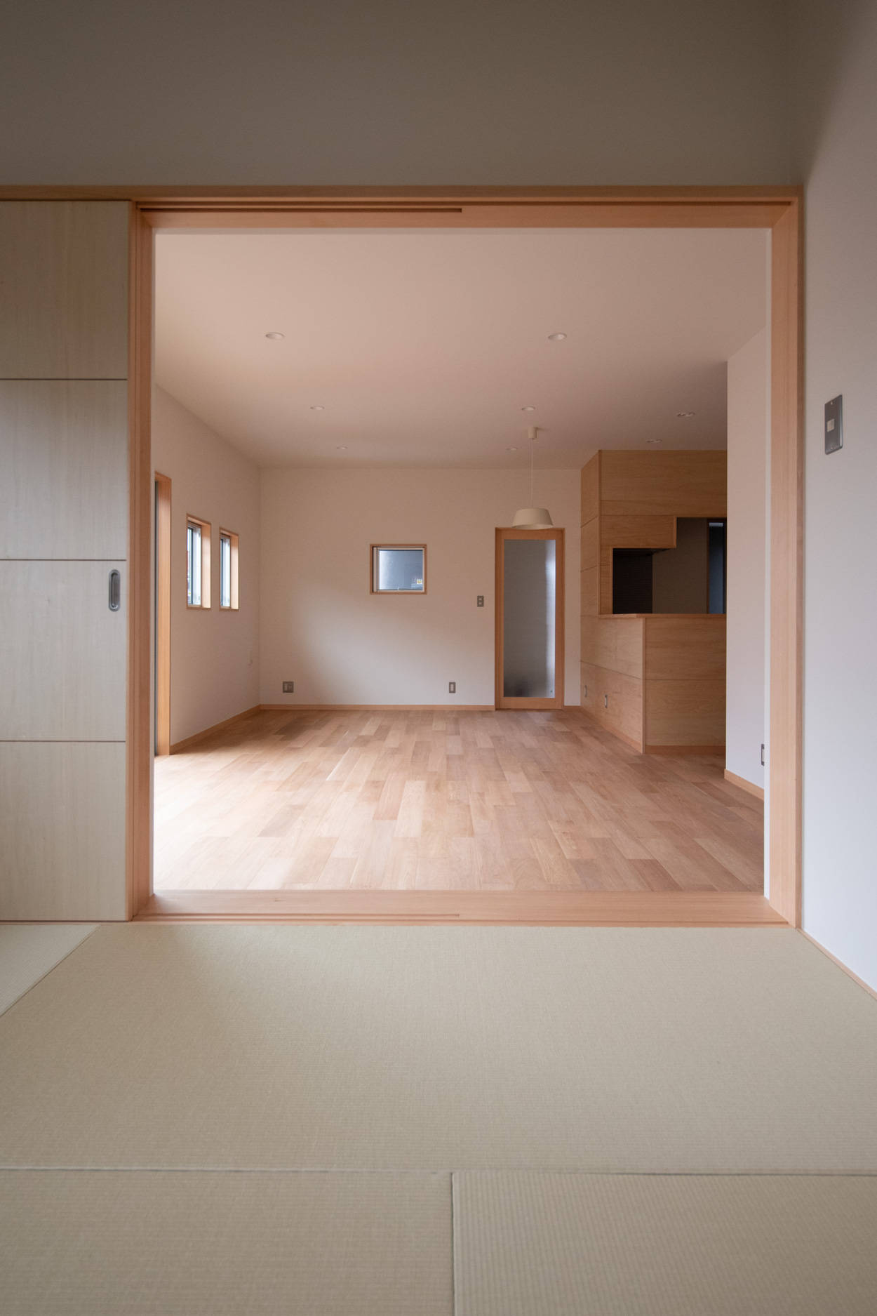 その際に便利なのが、リビングと続き間になっている畳スペース。引き戸を閉めてしまえば突然の来客でも隠すことができますし、床面をリビングから少しあげた上がり座敷にしておけば、多少散らかっていても、案外、気にならないものです。要は、片付いている部分(リビング)と、散らかしてもいい場所(和室)のメリハリが大事な気がします。