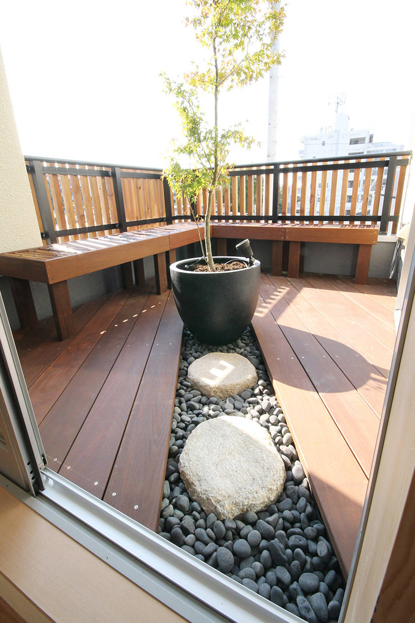 和のインテリアにこだわって竹や漆和紙などの素材を至る所に採用した。道路に向かう下屋を通る人の目にも優しく、店舗の看板にもなるようにと花畑の屋根とした。風にそよぐ草花が和やかで落ち着いたイメージを与えている。