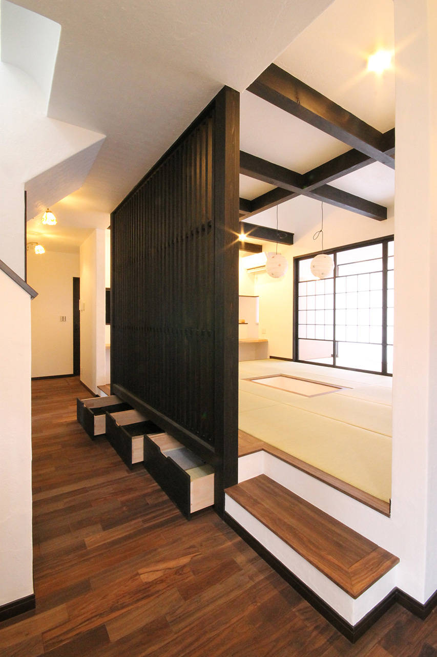 和の落ち着いた雰囲気と洋の華やかな雰囲気を織り交ぜた個性的な空間となっている。