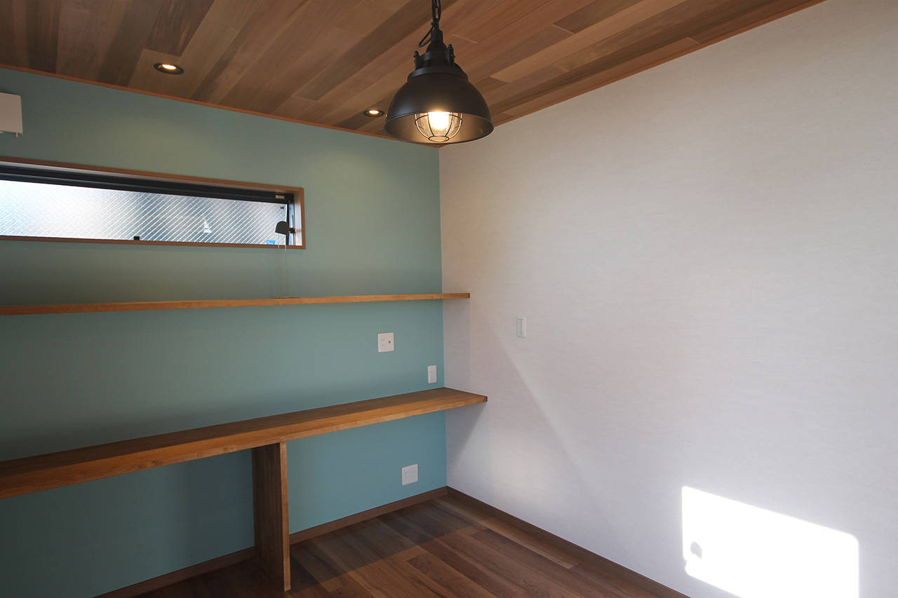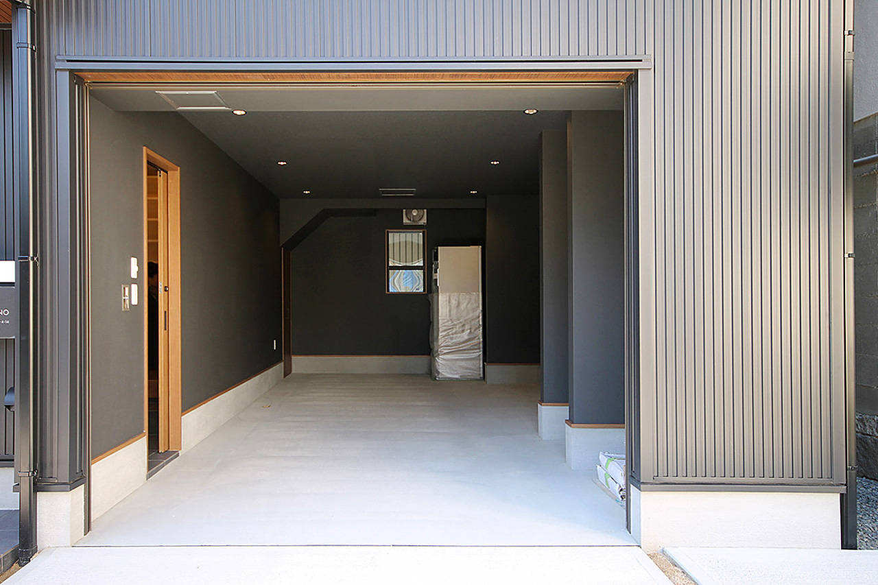 趣味のバイクや自動車を楽しめるよう広々としたインナーガレージを二台分確保し、車の見える位置にご主人のお部屋をもうけた。