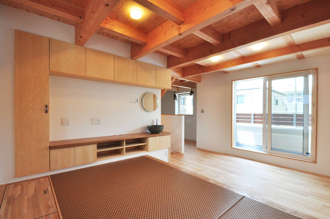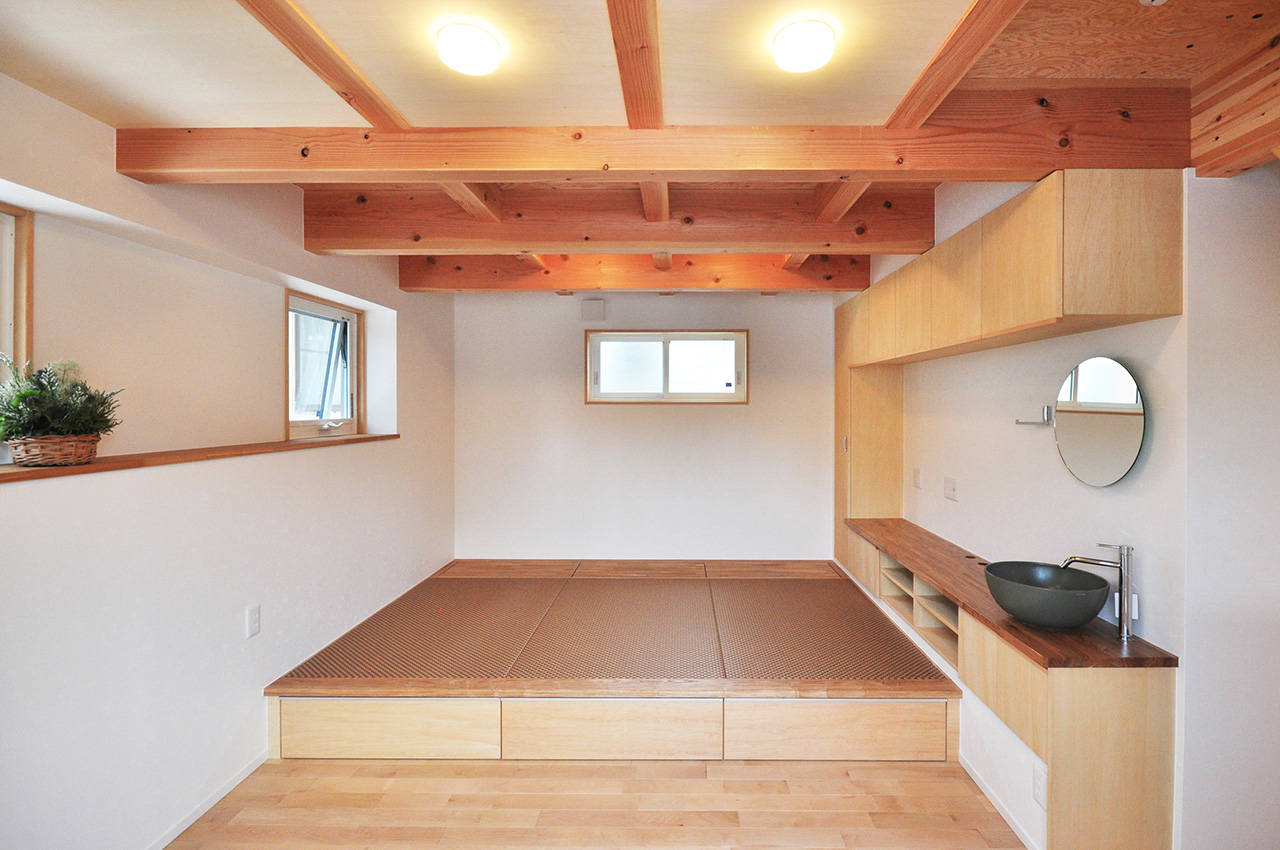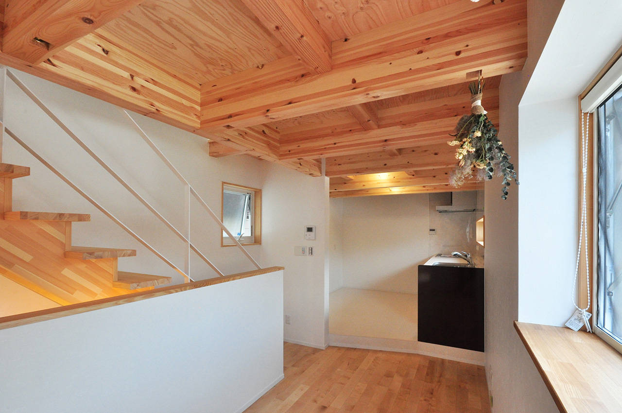 床下や天井裏の空間をなしにして構造をあらわしにした。
