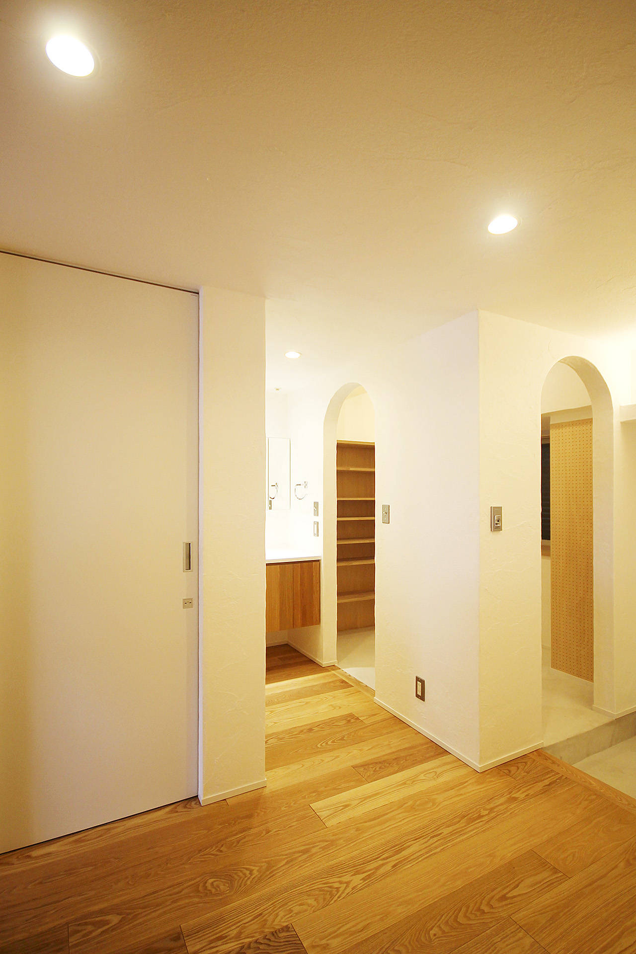 白い漆喰とシンプルな木の素材感のあるお家です。