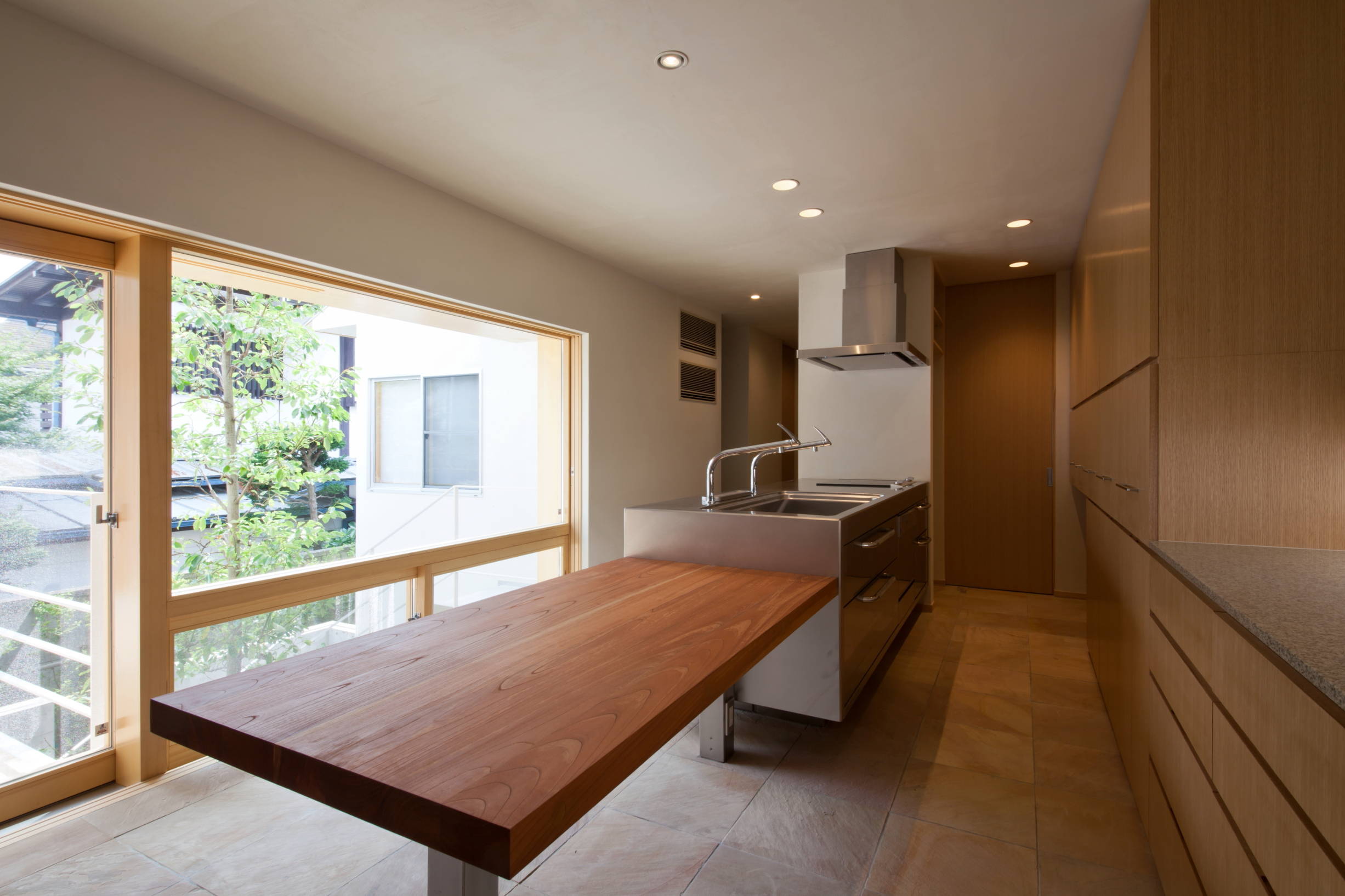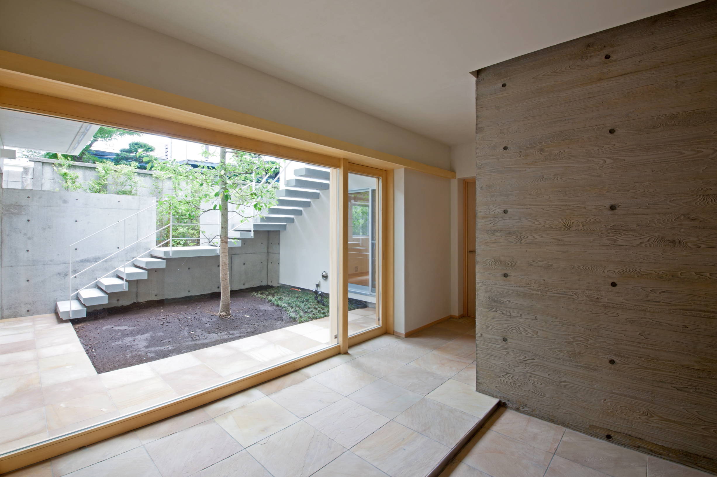 中庭を中心にした家です。どの部屋からもシンボルツリーが見えて、それぞれ趣の違う緑が、四季を通して目を楽しませてくれます。