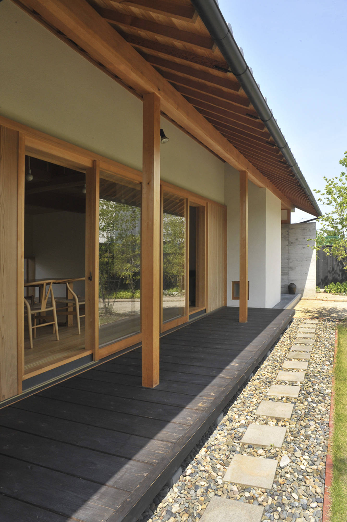建主の希望で二階建てであるが平屋に見えるように設計している。