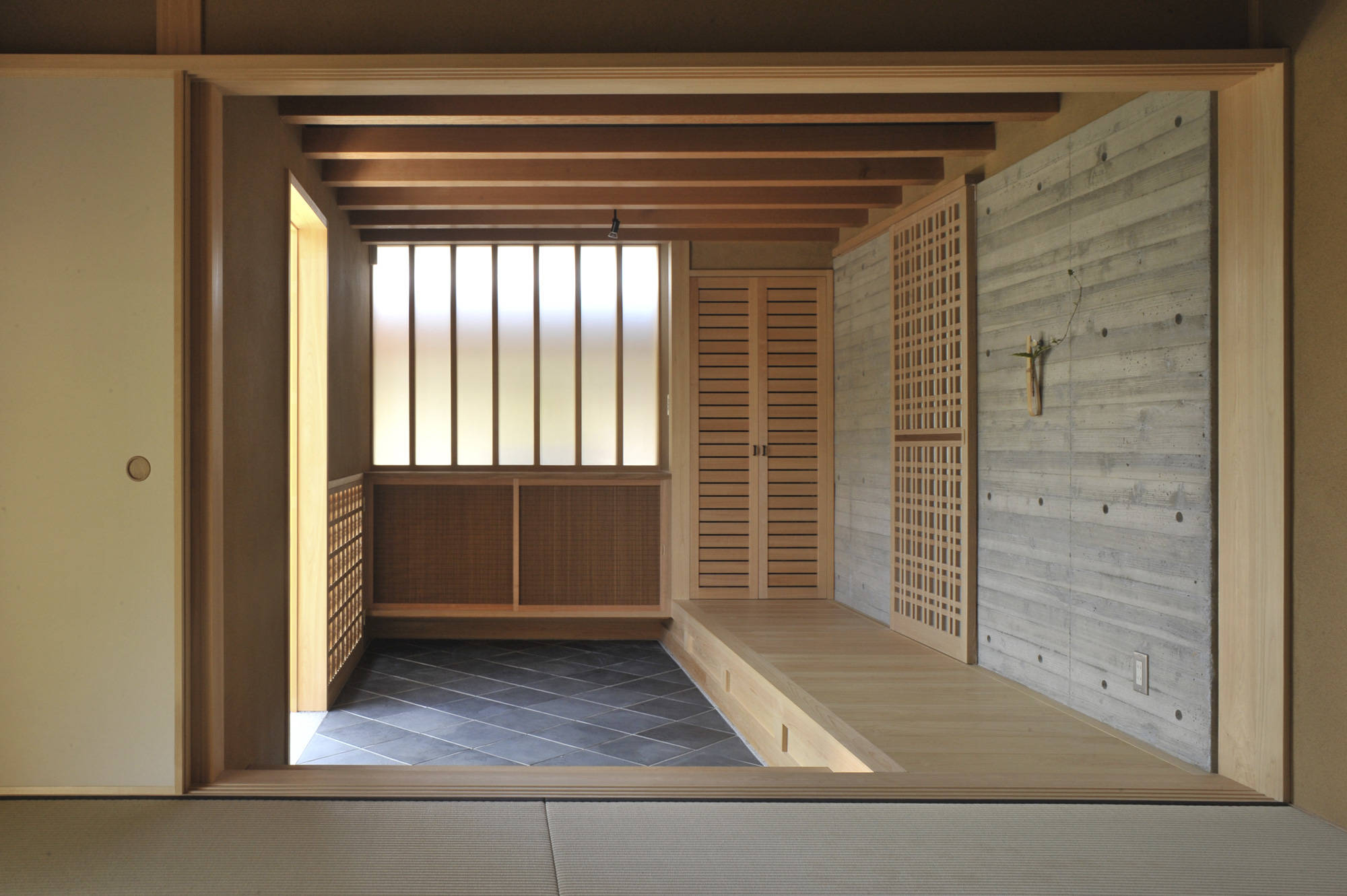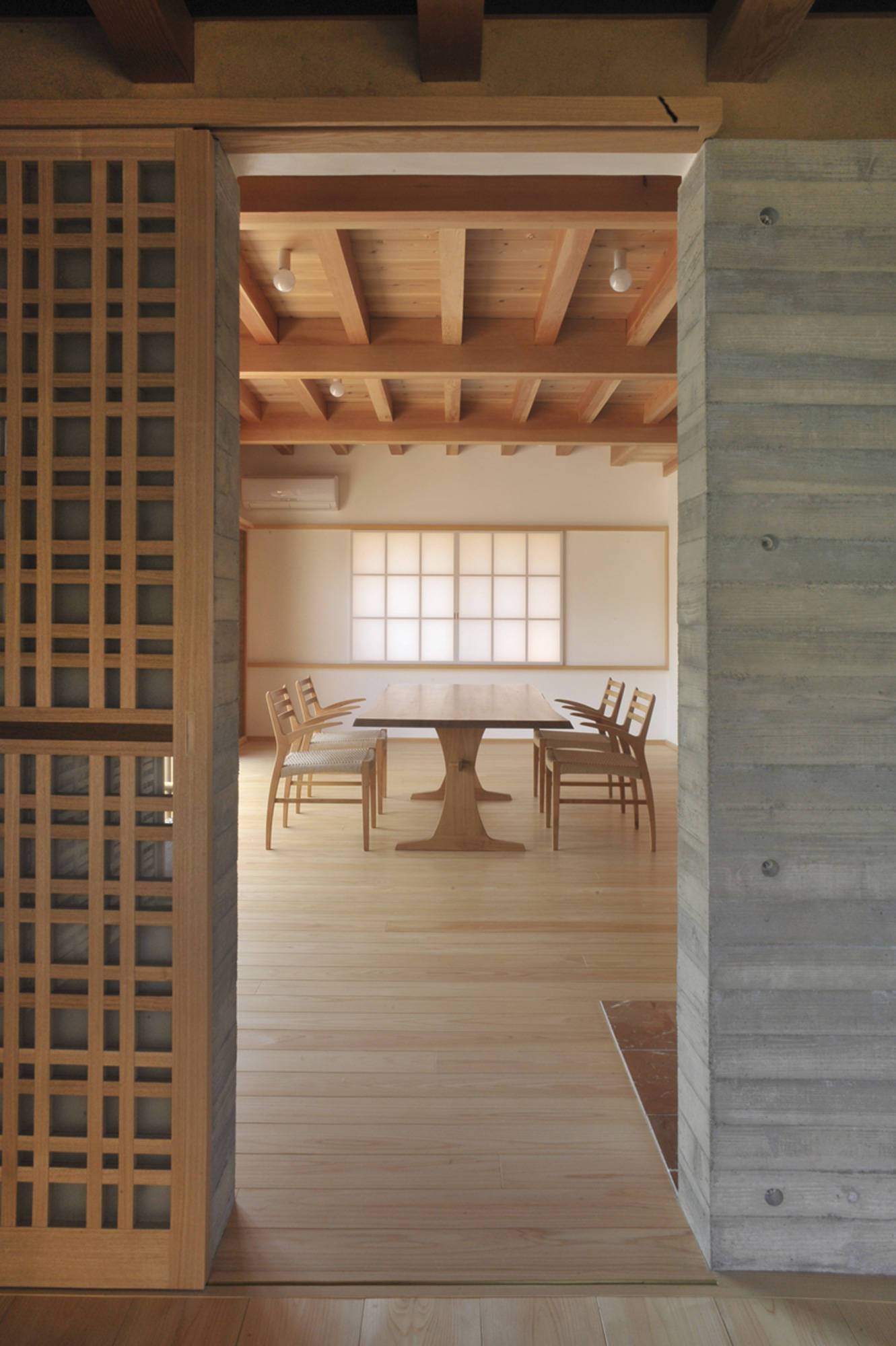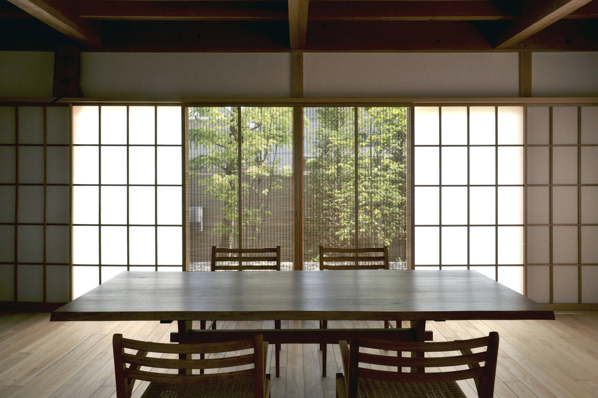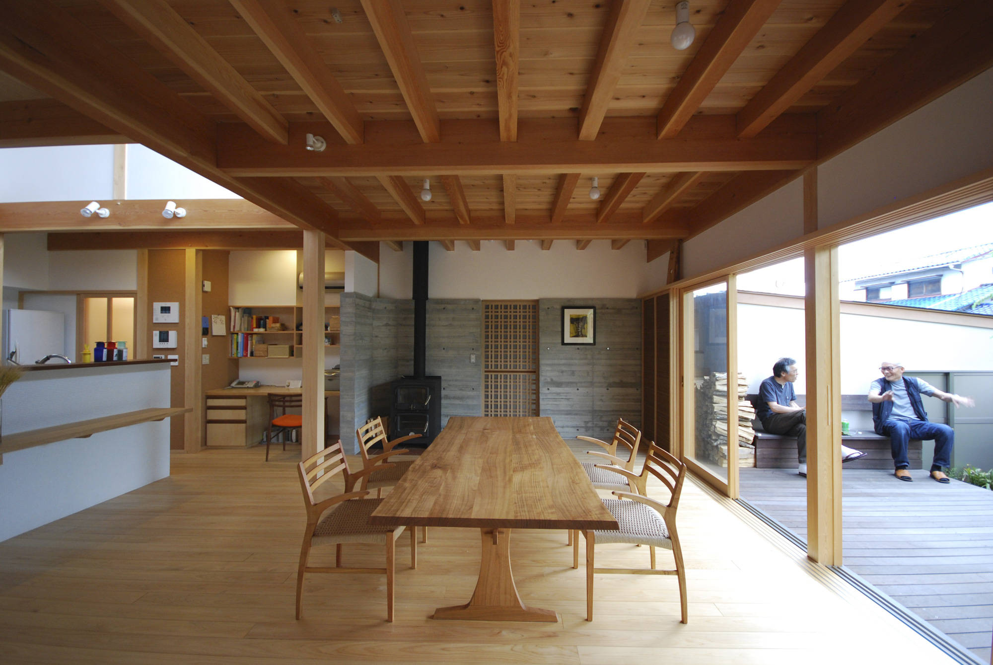 名前の通り桜の好きな夫婦のため、広いデッキの先に桜を植え、キッチンからもダイニング、リビングを通して眺めることができる。