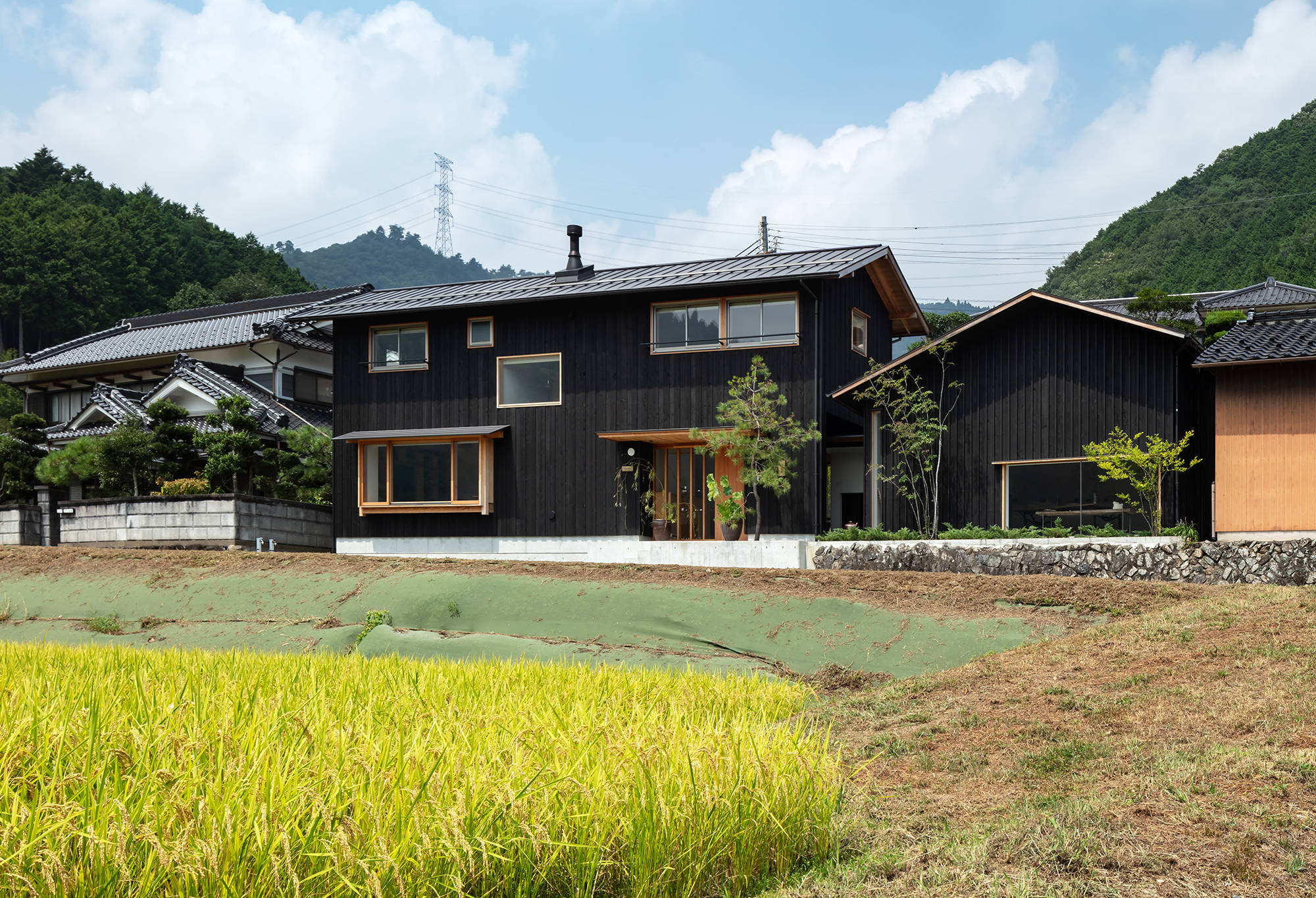 宍粟市山崎町の民家が点在し、田園風景が広がる閑静な場所に建つ若い作家夫婦のギャラリー・工房を持つ住宅です。