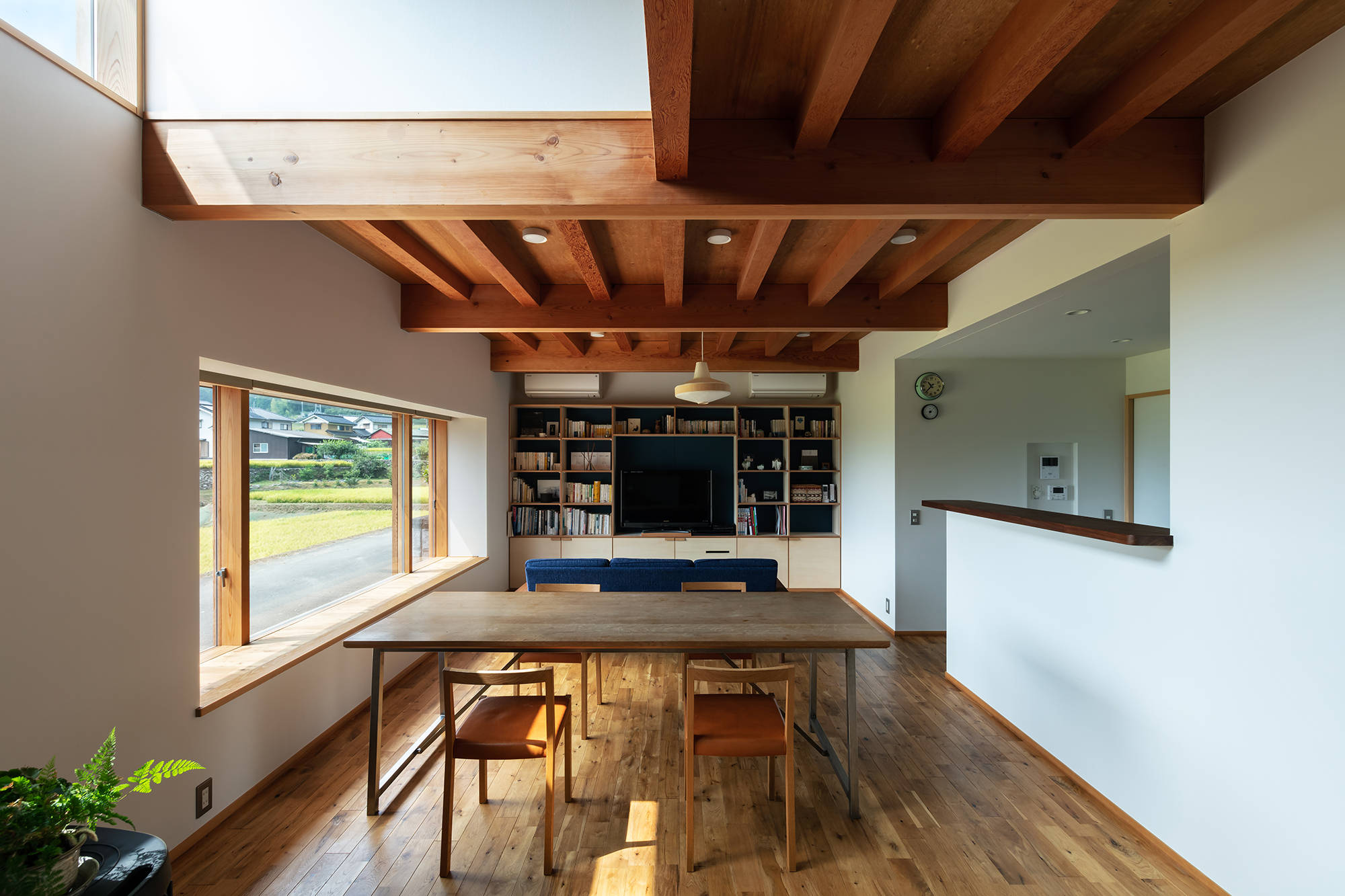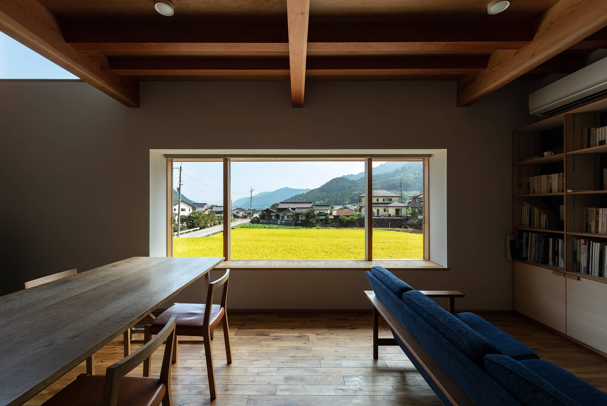 居間の大きな出窓からは田園風景を。