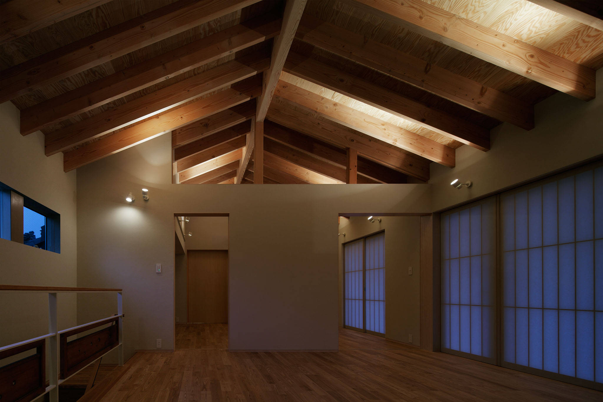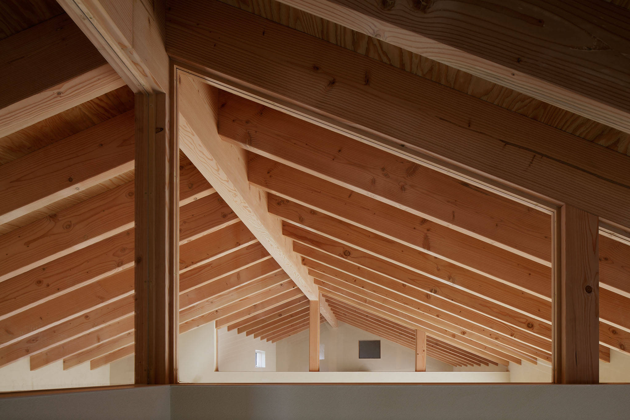 この地域の気候や景観を考慮して、屋根材には釉薬瓦を採用し、またバルコニーの庇をガラスにして冬の日射を効率的に取り込むようにしています。