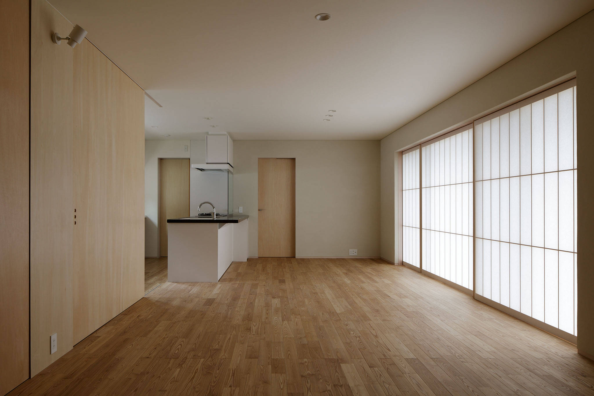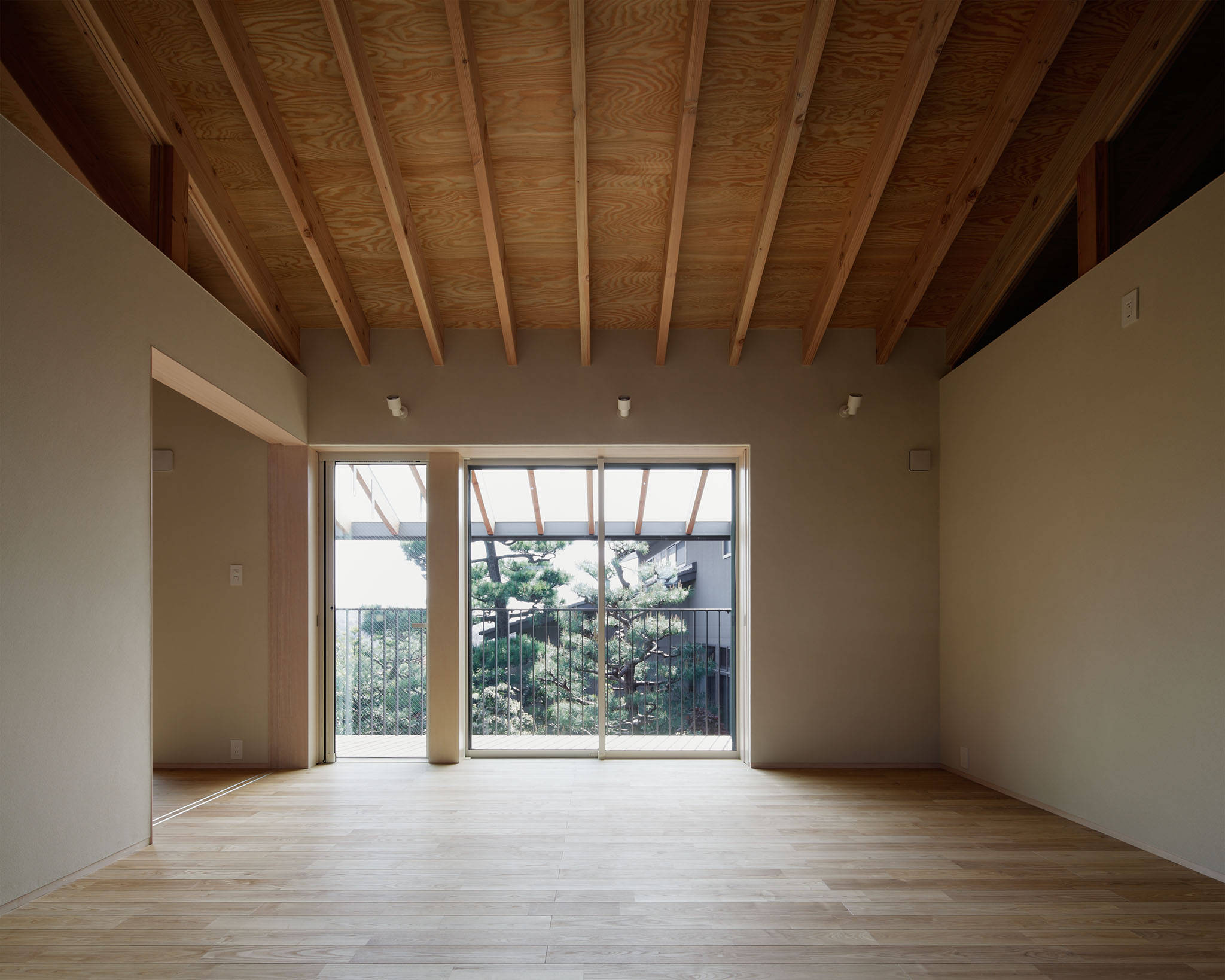 どの部屋からも庭のある南側に対して開放性と方向性を持たせるように計画しました。