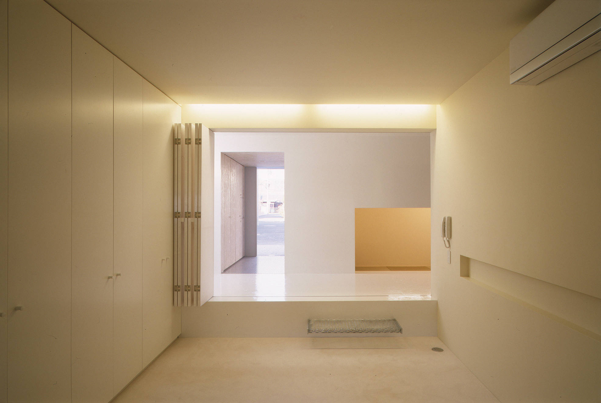 1階のグランドレベルより少しだけ床レベルを低くした個室は、こもり感を演出しながら2階の開放感と対比させることで、両方の階の個性を際立たせています。