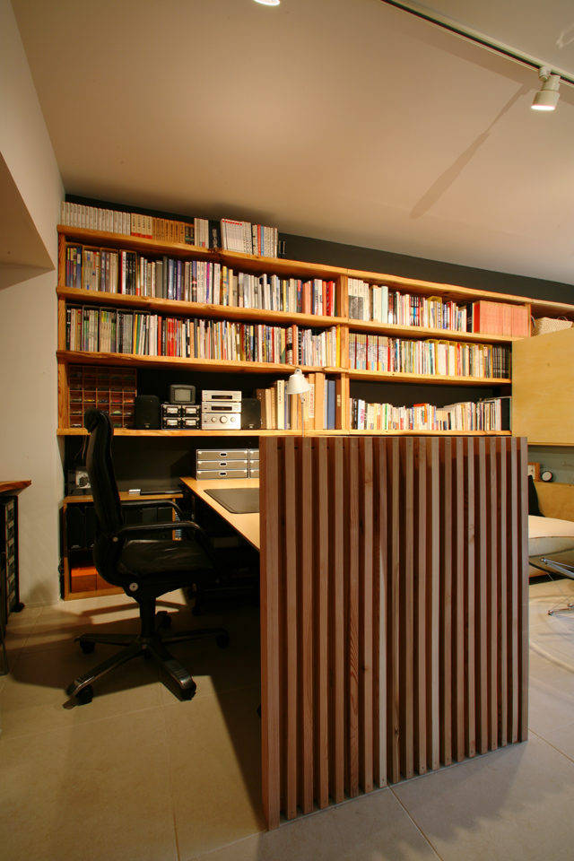 この可動家具は組み替えが可能。例えば将来、子どもコーナーが要らなくなった時にはソファーコーナーを広くとったり、ご夫婦それぞれの趣味のスペースをつくったりすることもできます。壁で仕切られていないので、それぞれの場所のつながり方は様々。