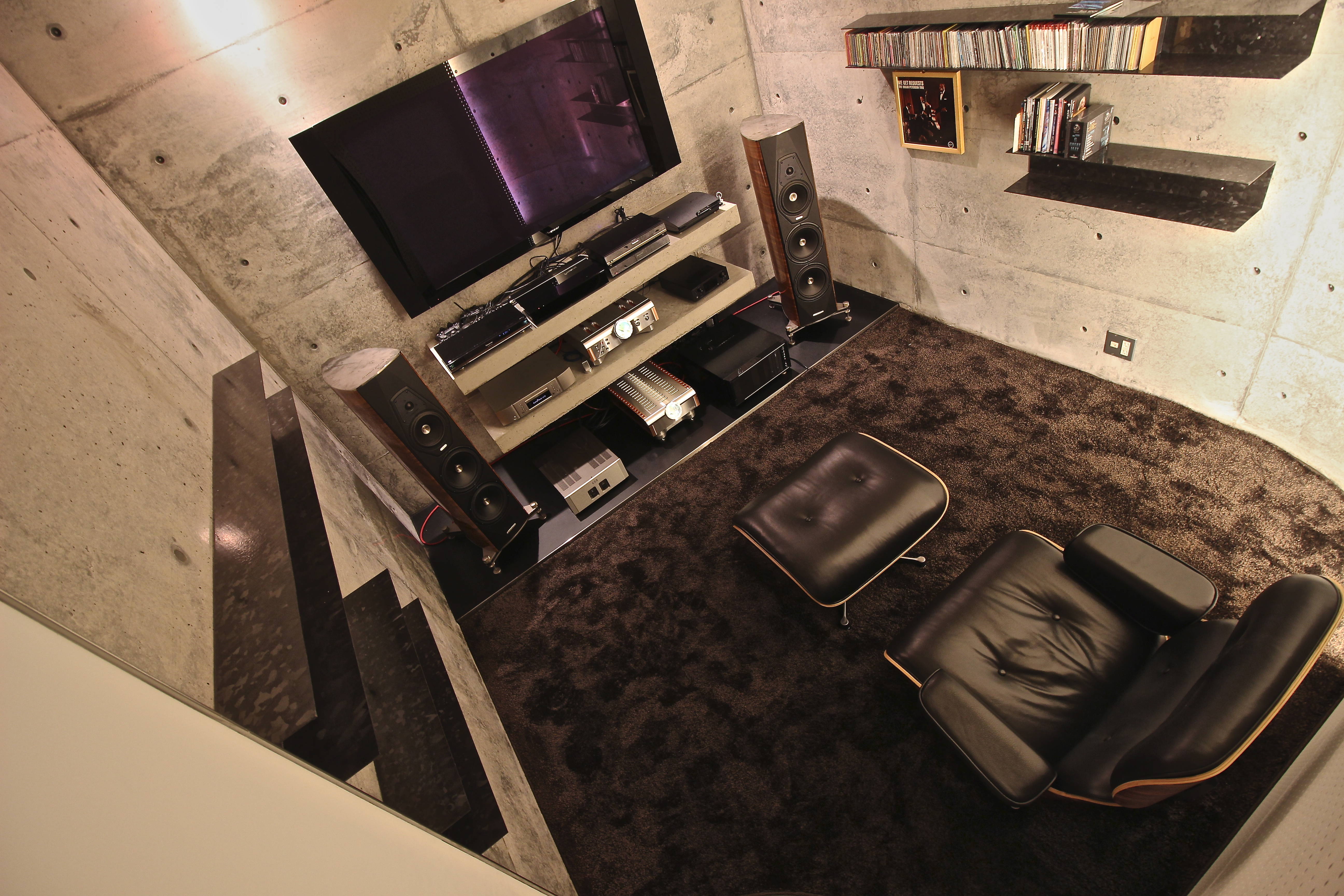 オーディオルーム(以下AR)を持つコンクリート打ち放しの住宅...
