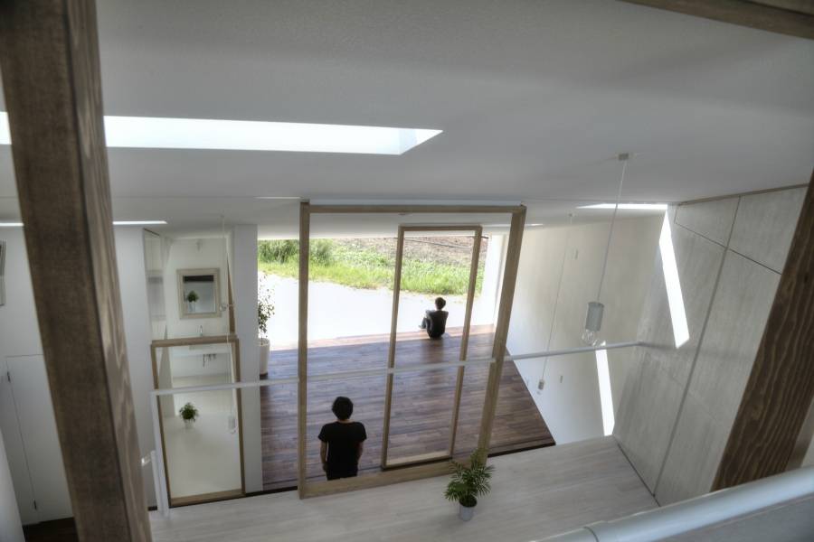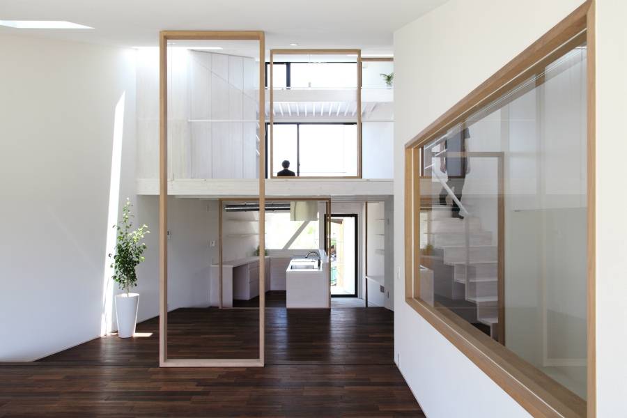 壁や扉ではなく木枠による境界は存在として感じられるが弱く、ワンルームでありながら別の領域として認識されることもある。木枠は境界としてだけではなく、手摺子や将来の間仕切りとして可動するもある。