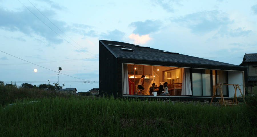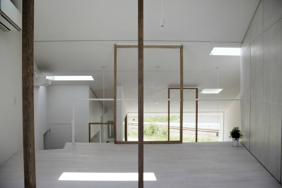ワンルームの住宅は全体が見渡せることや、場のつながりが強いことなどメリットが多いが、単調な空間になることもある。この計画では東西の良好な風景をつなぎながら、そのワンルームに奥行きと密度を与えるべく「空気の境界」を設けることを提案した。神社で鳥居を潜るときに感じるあの感覚である。